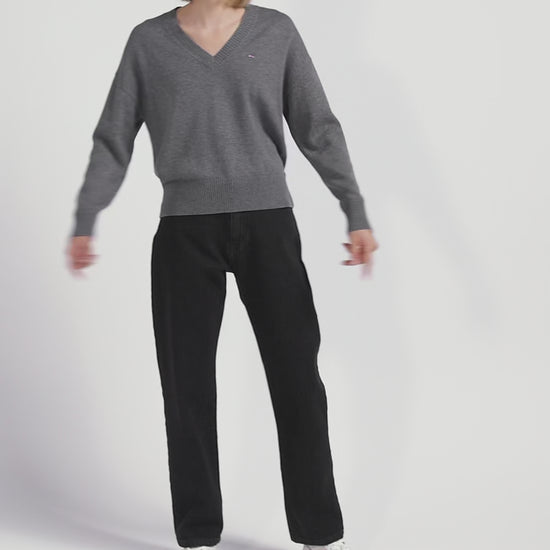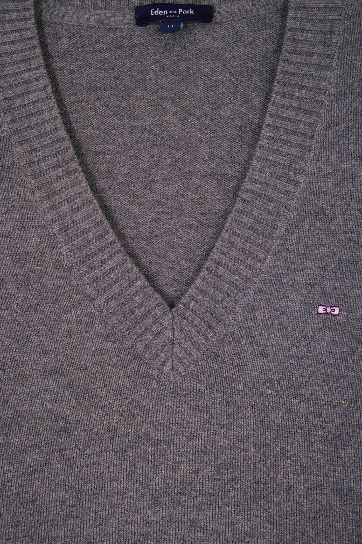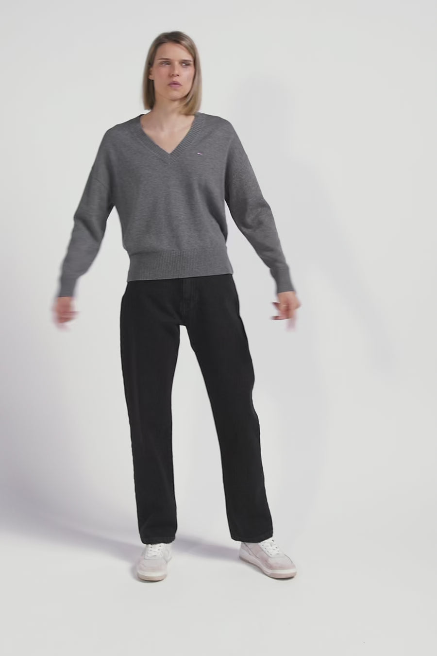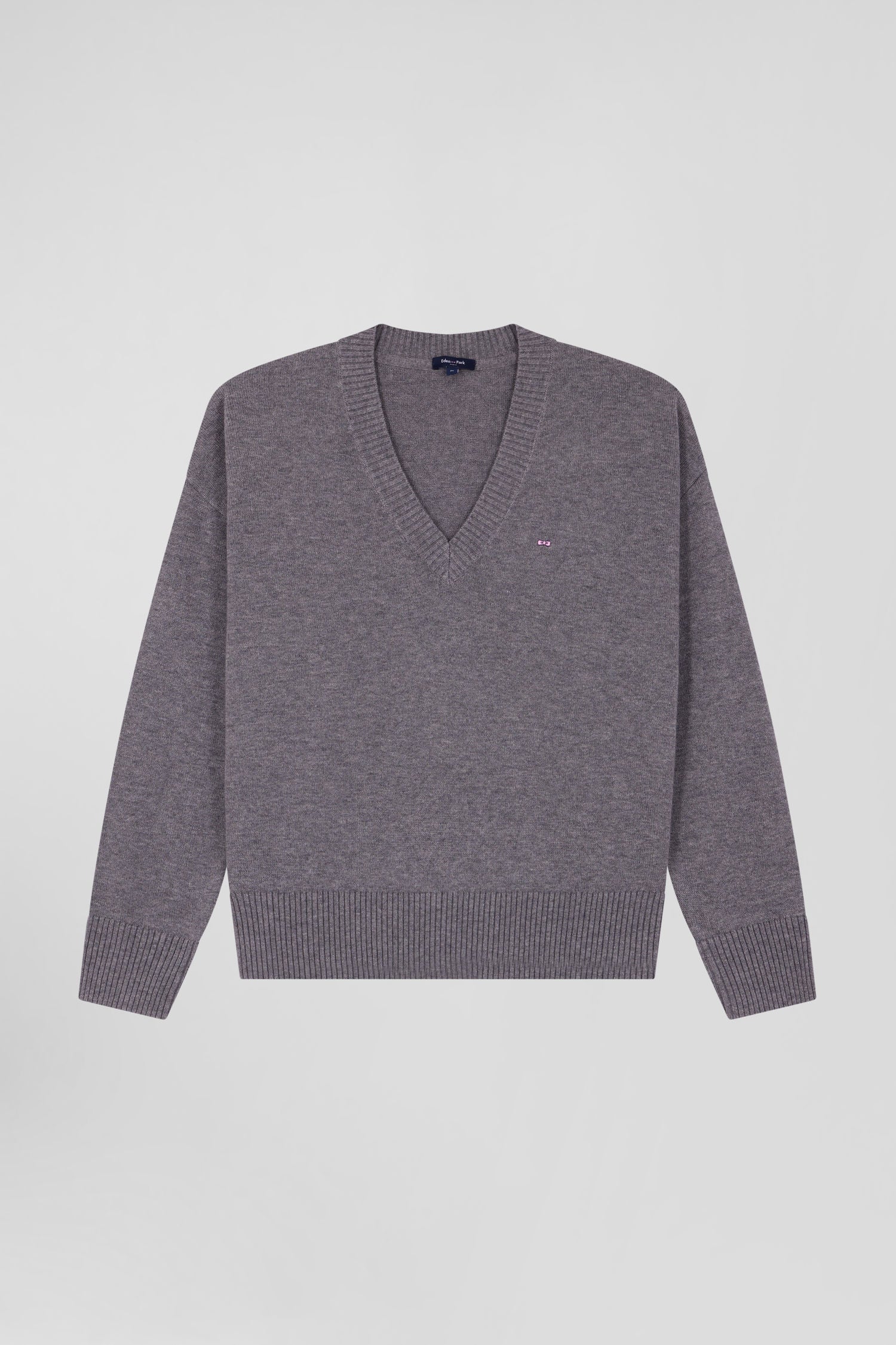 Pull col V en laine et coton gris anthracite coupe Relaxed