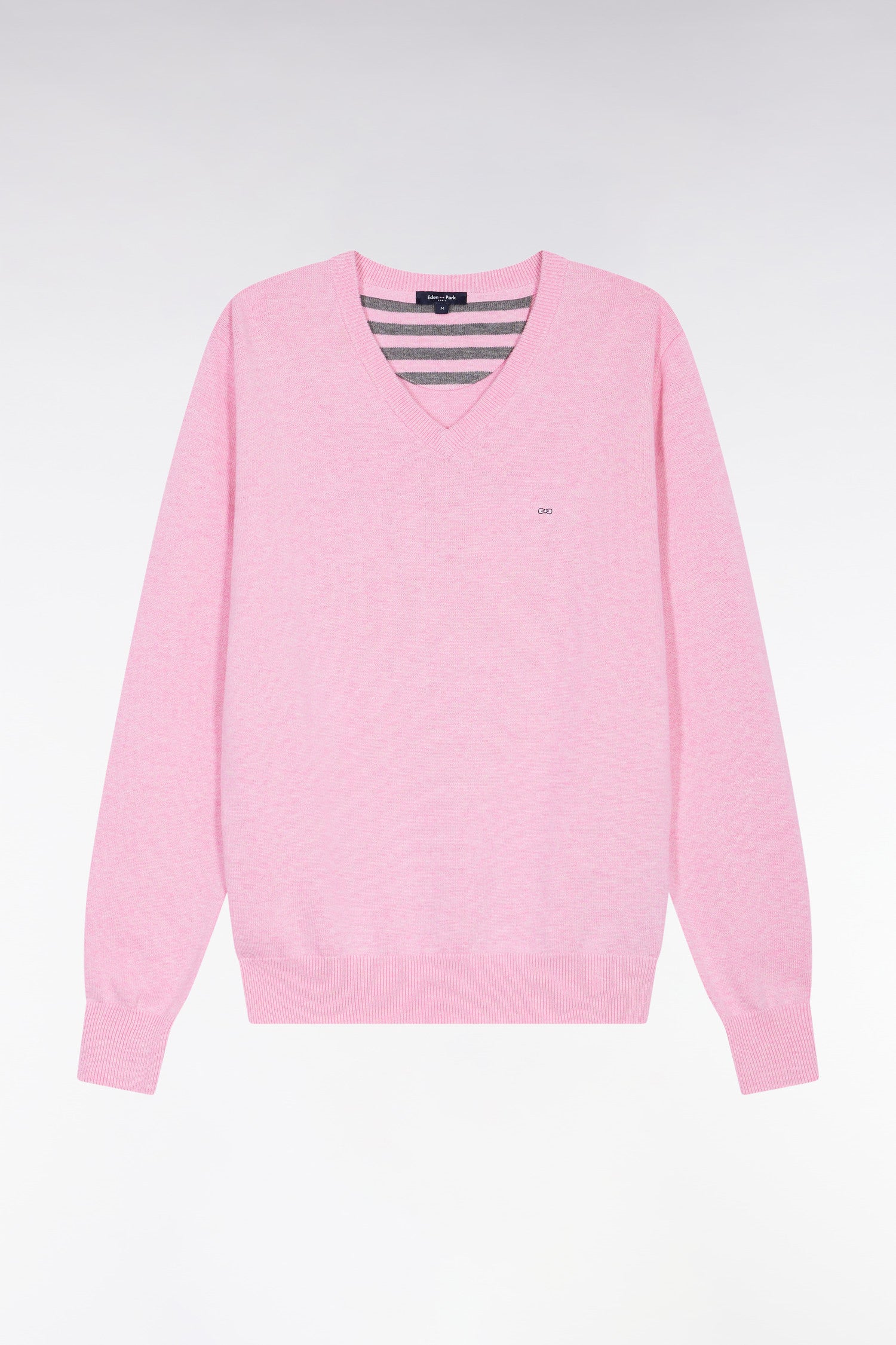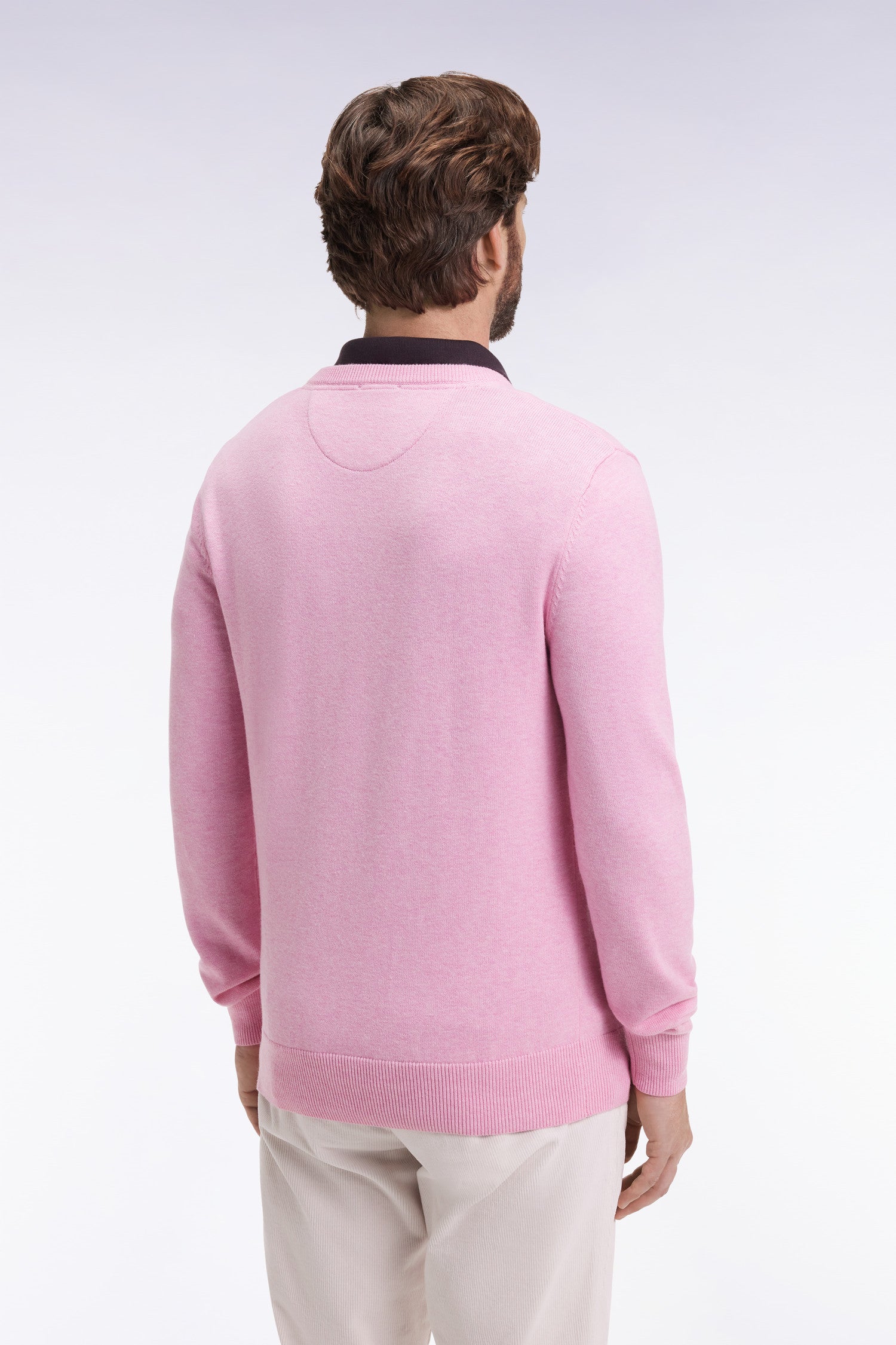 Pull col V en laine et coton rose