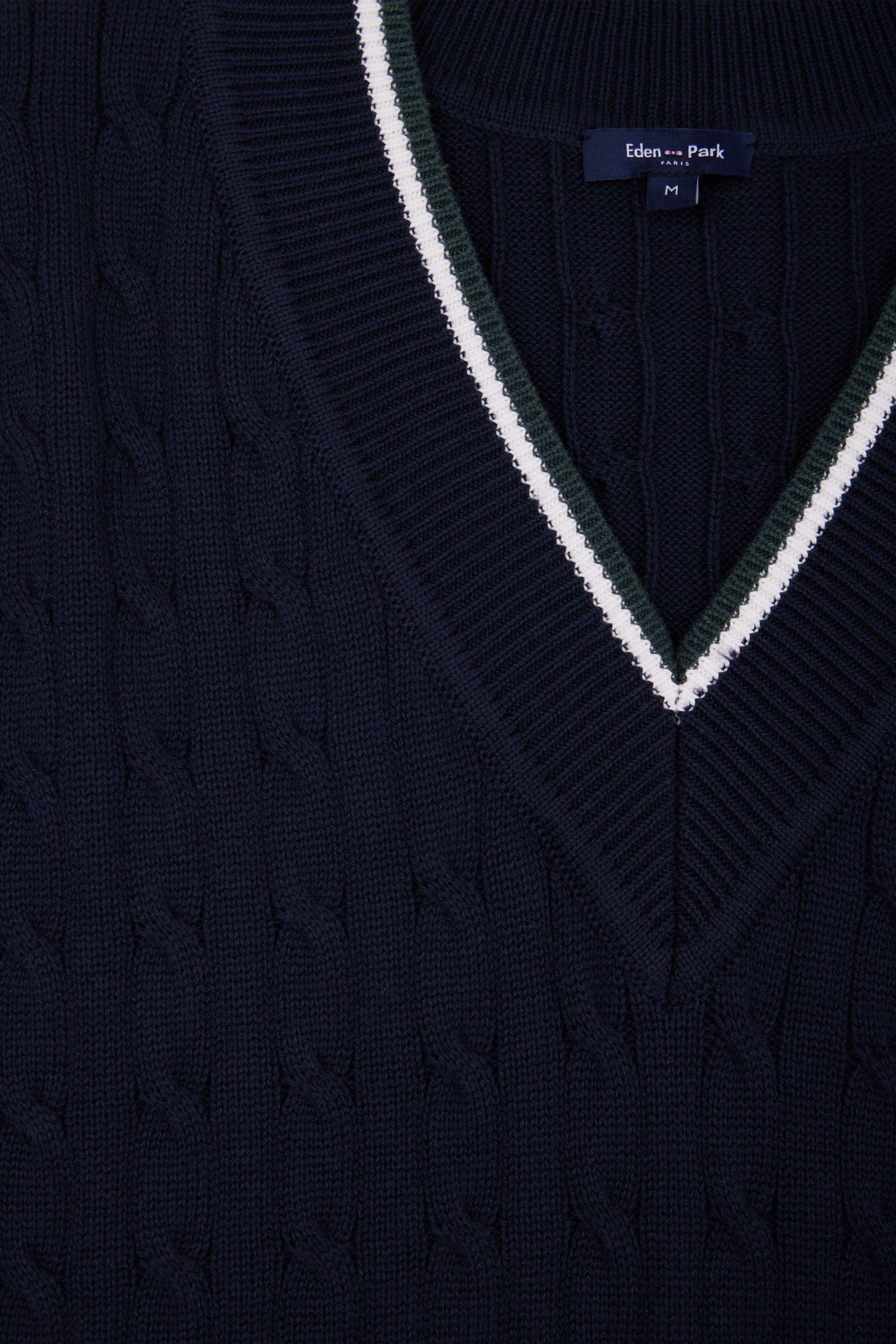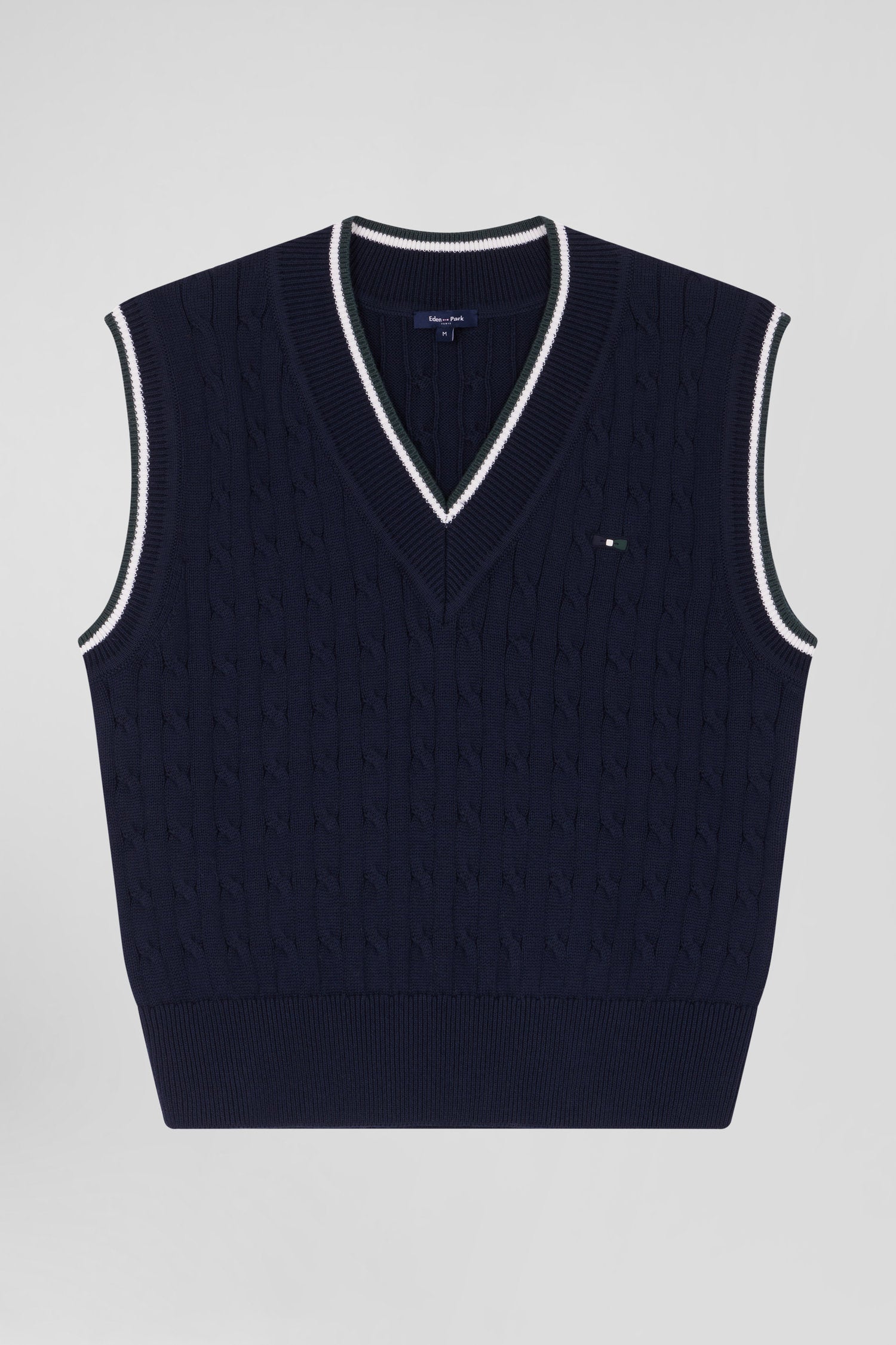 Pull col V sans manches en coton torsadé bleu marine coupe Relaxed