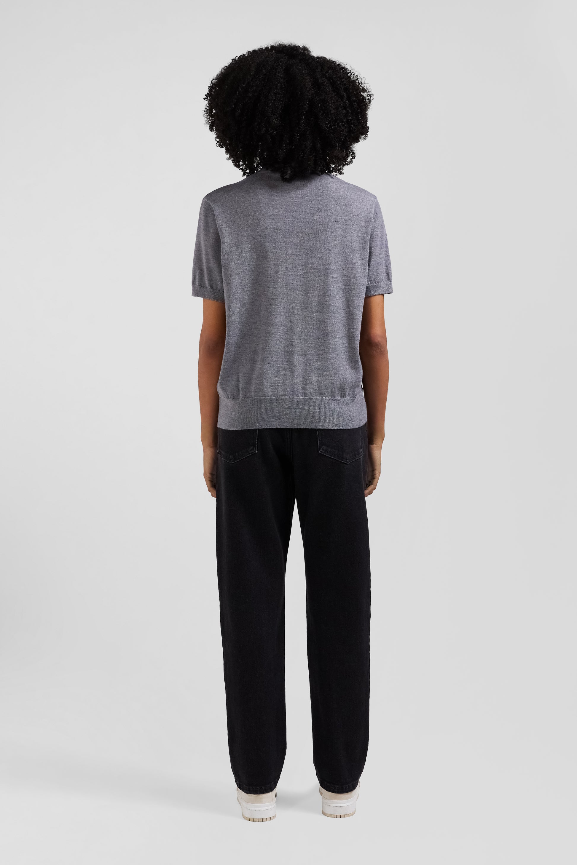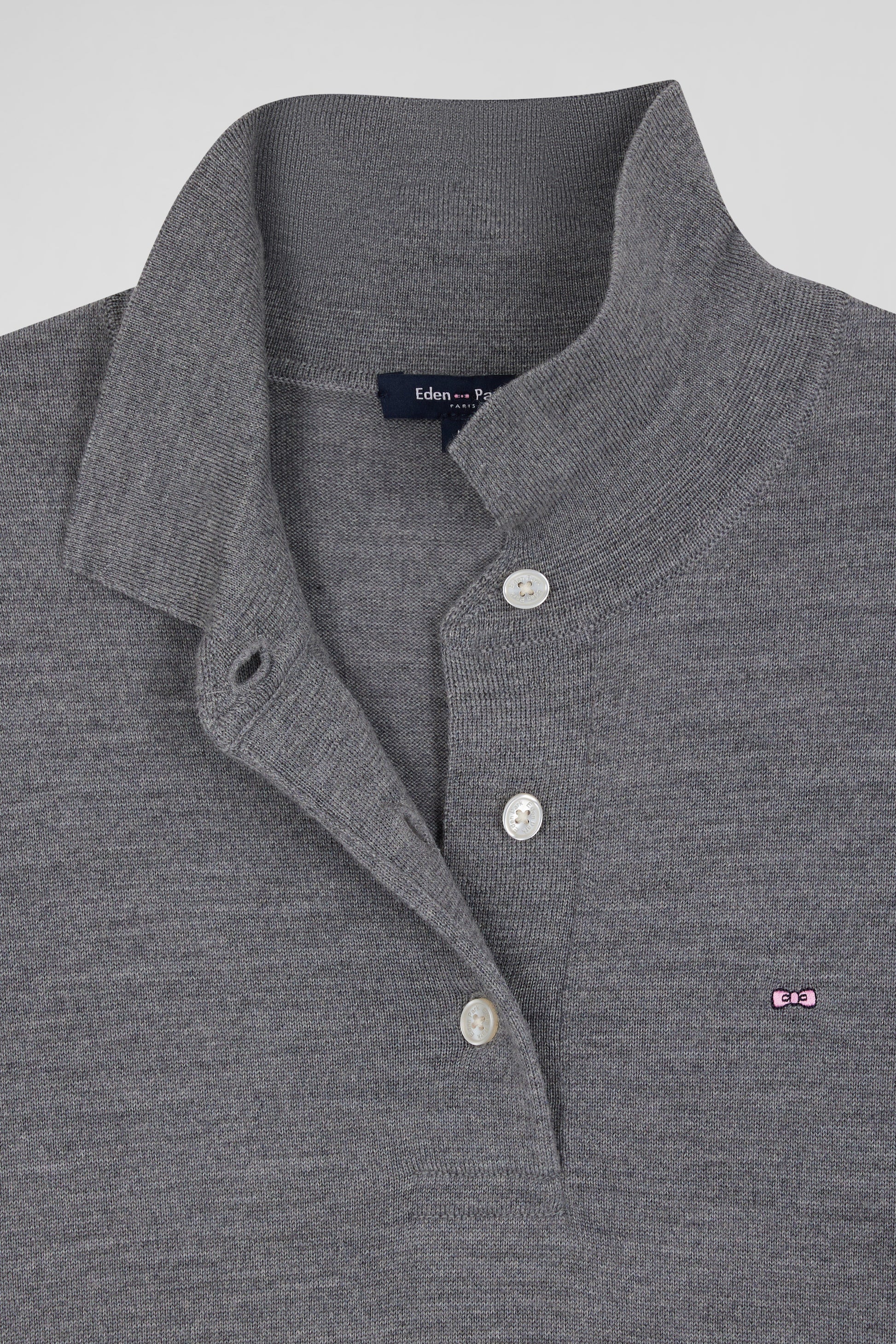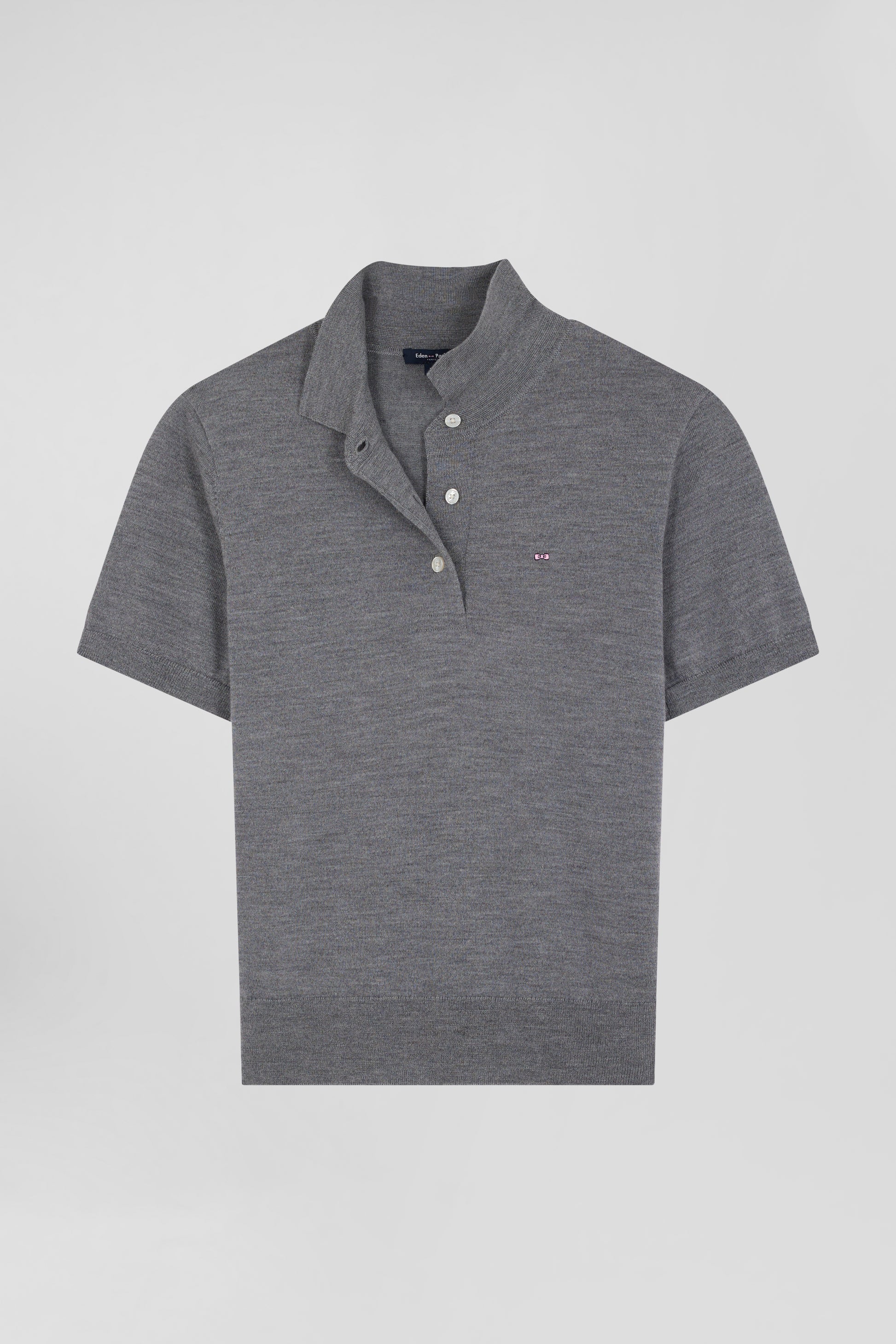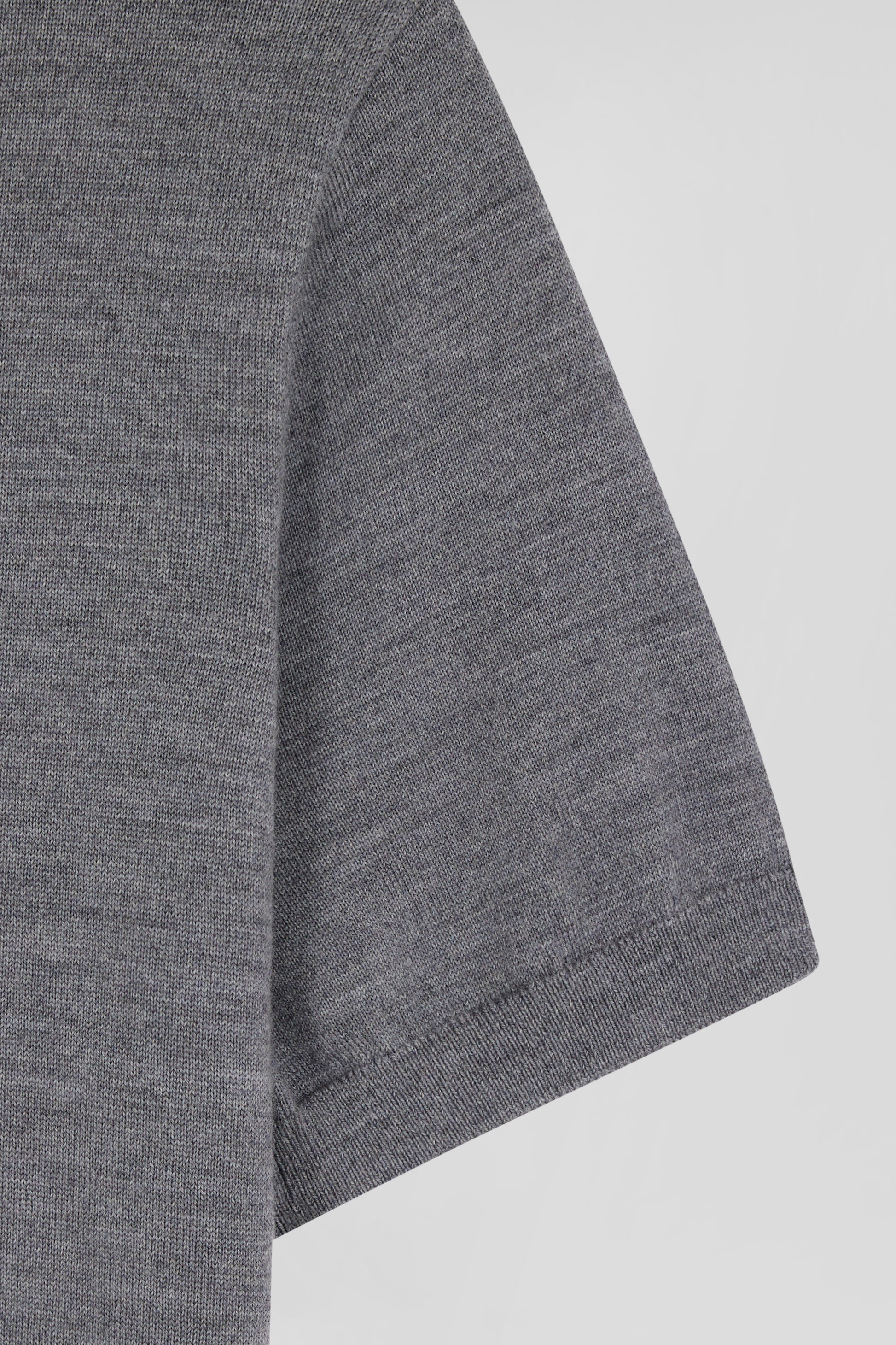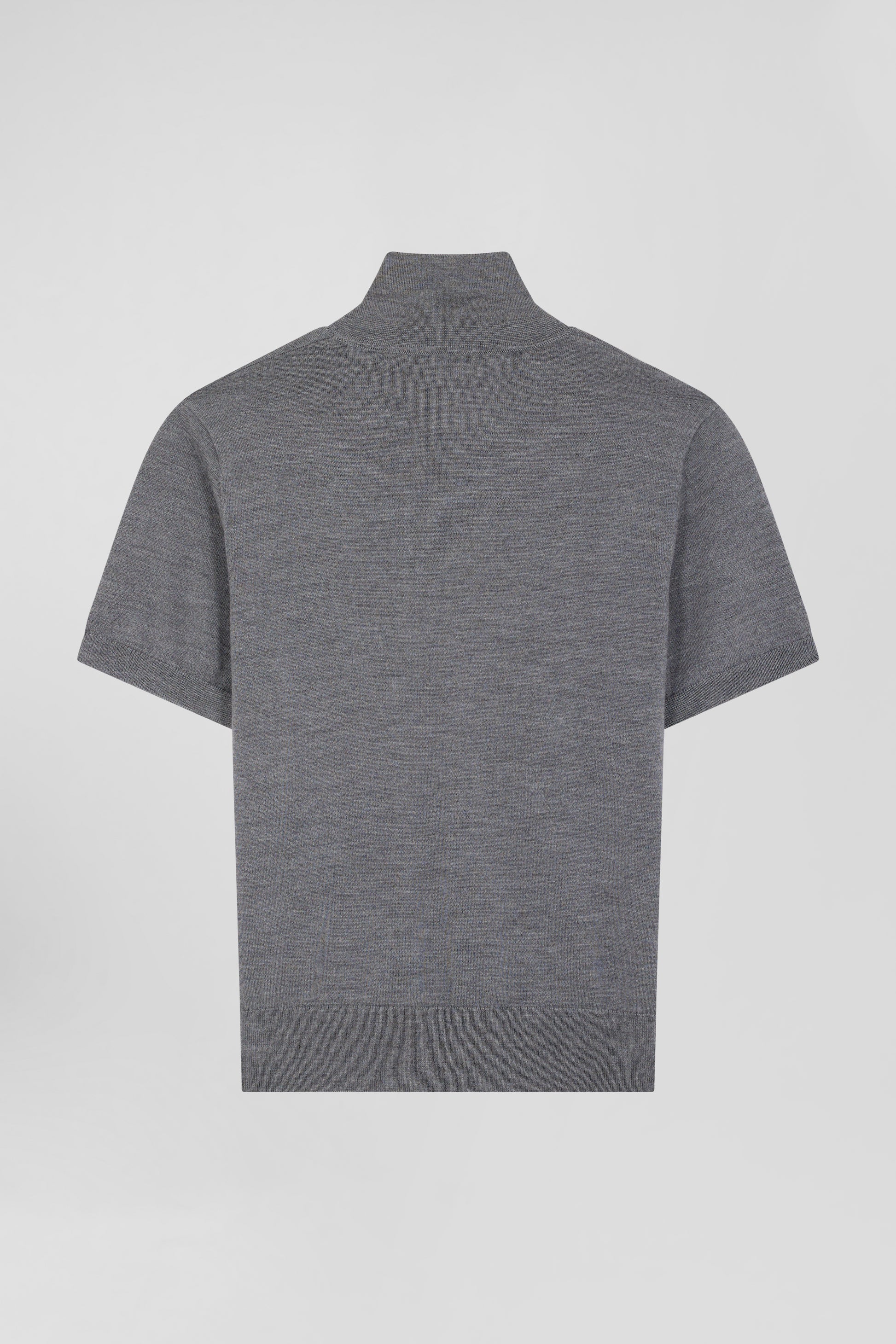 Pull manches courtes à col polo en laine gris foncé coupe Regular