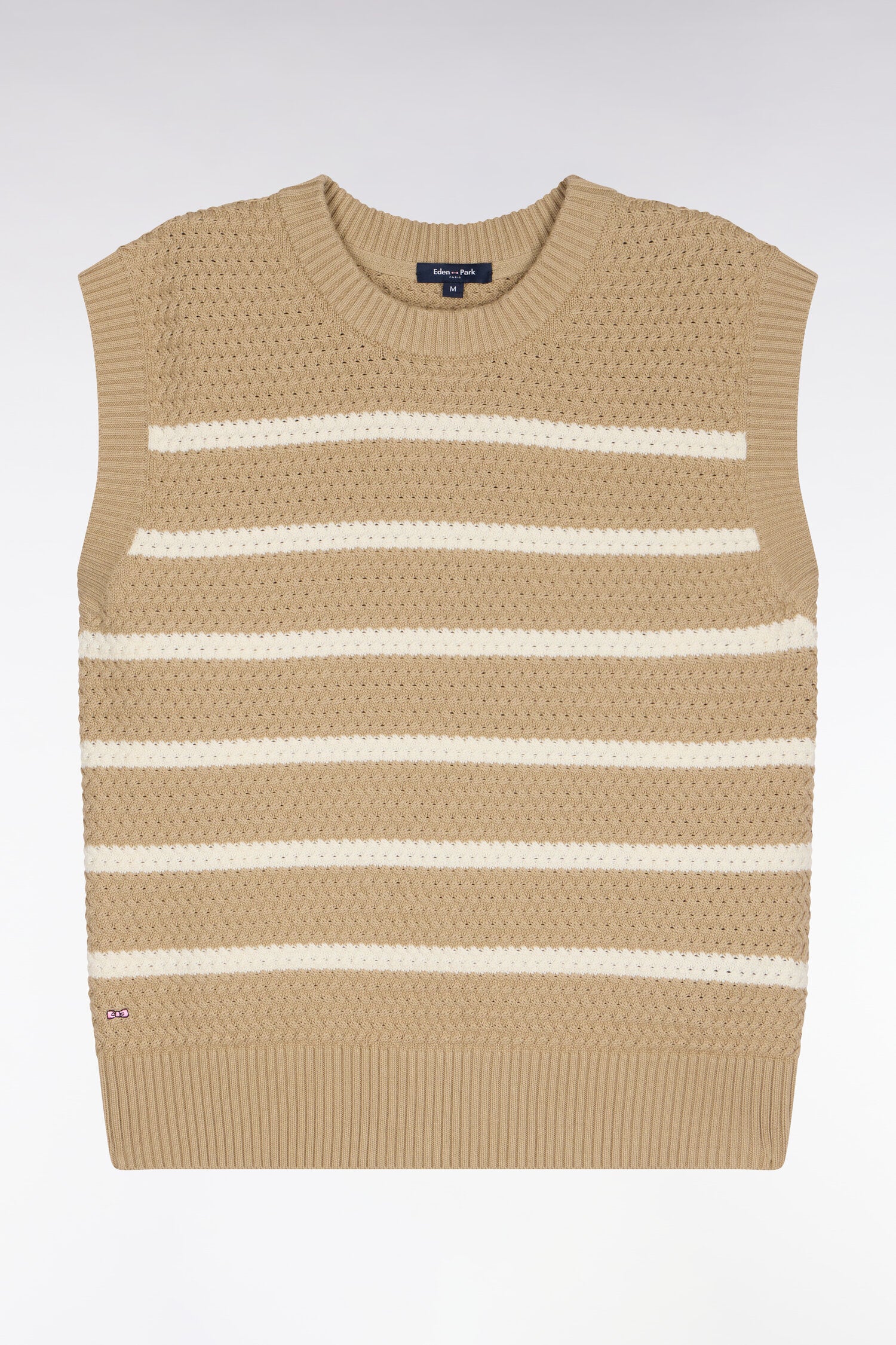 Pull marinière sans manche en coton tressé beige