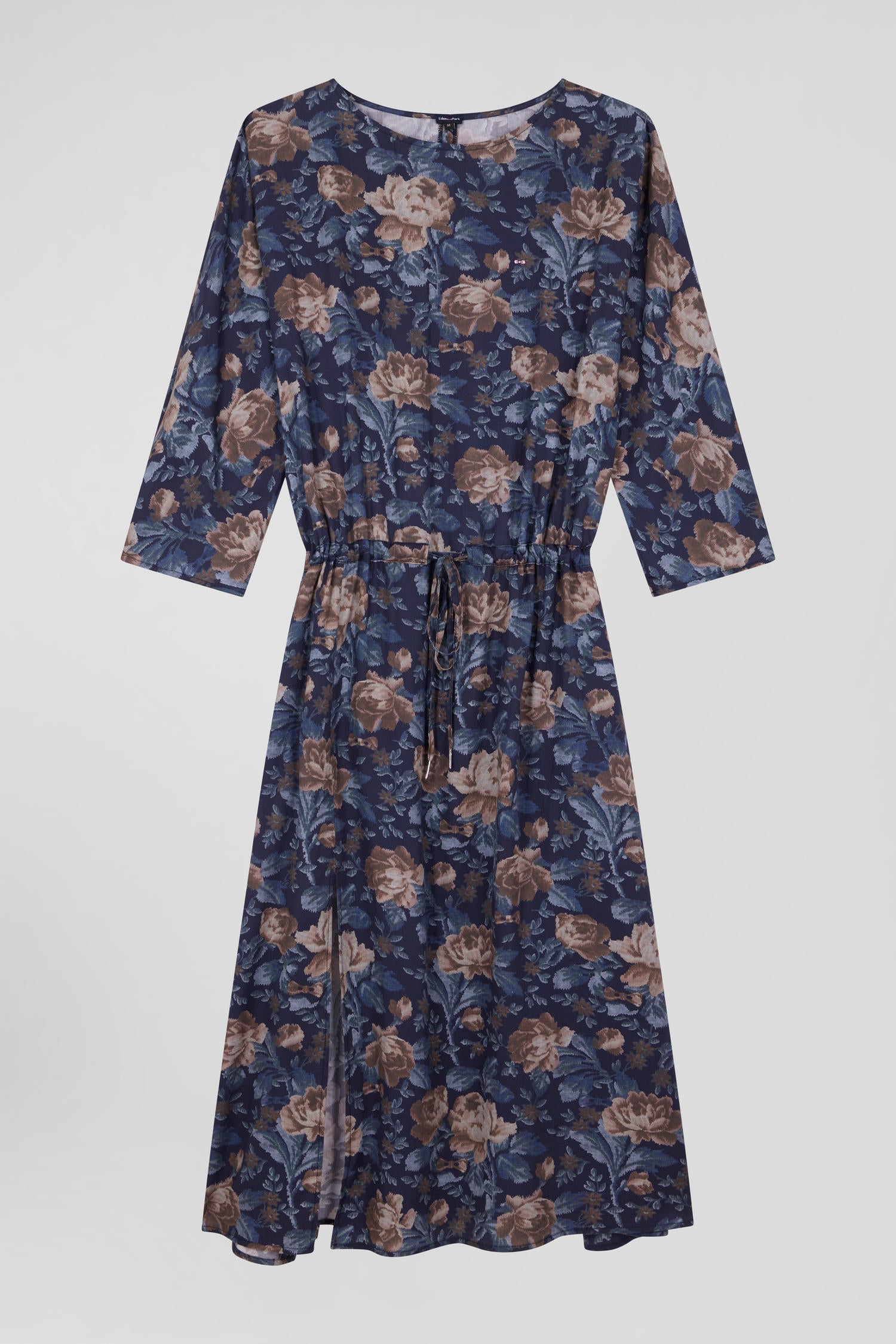 Avec ses manches 3/4, son col rond dégageant le port de tête et sa taille élégamment cintrée à l'aide d'un cordon de serrage cette robe met en valeur la silhouette féminine en toutes occasions. Cette robe bleue habillée d'un large imprimé floral aux inspirations vintage se dote d'une fente sur la jambe. Avec des sandales ou une paire de baskets, cette robe en lyocell est une promesse de confort et d'élégance.