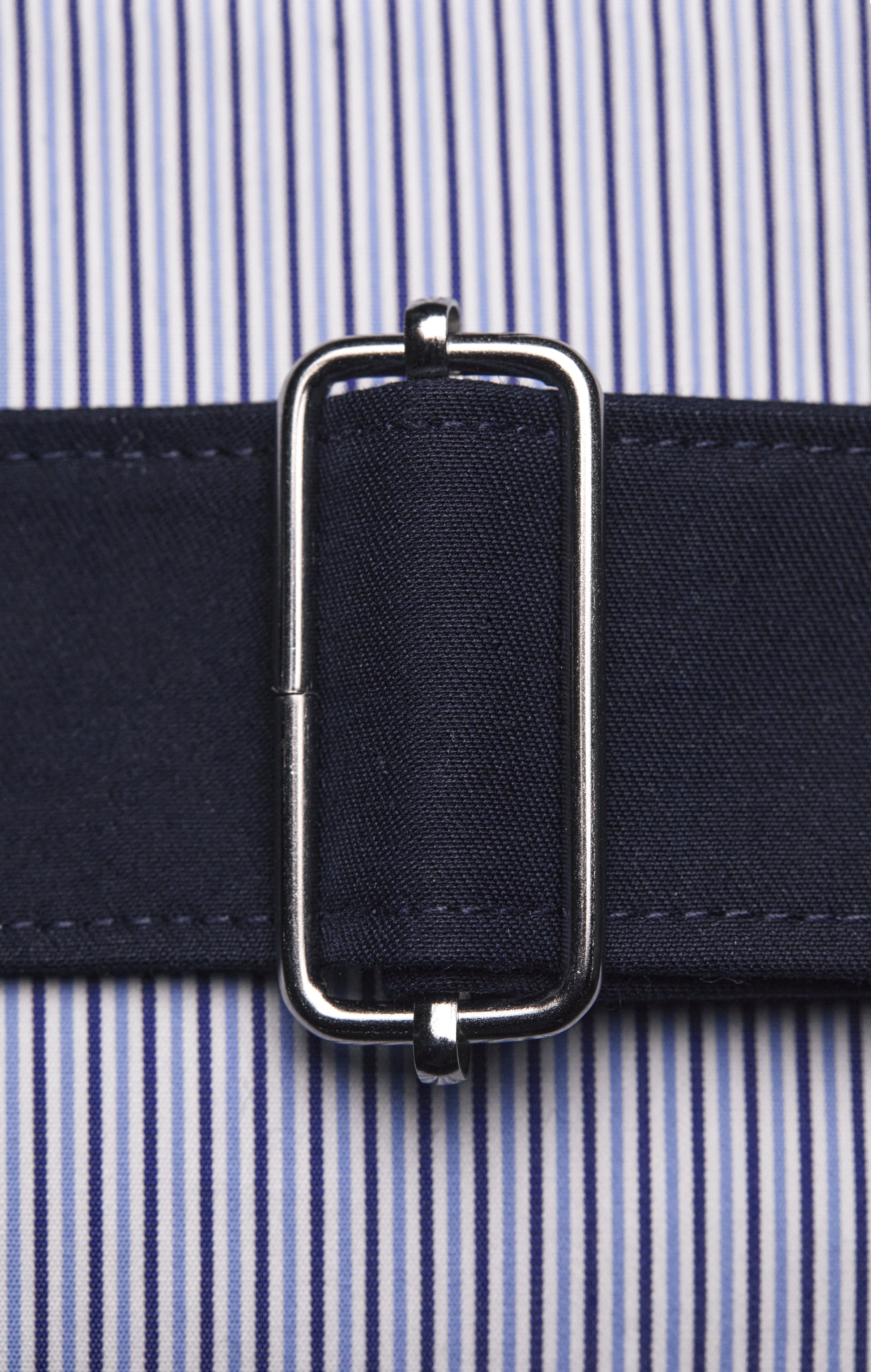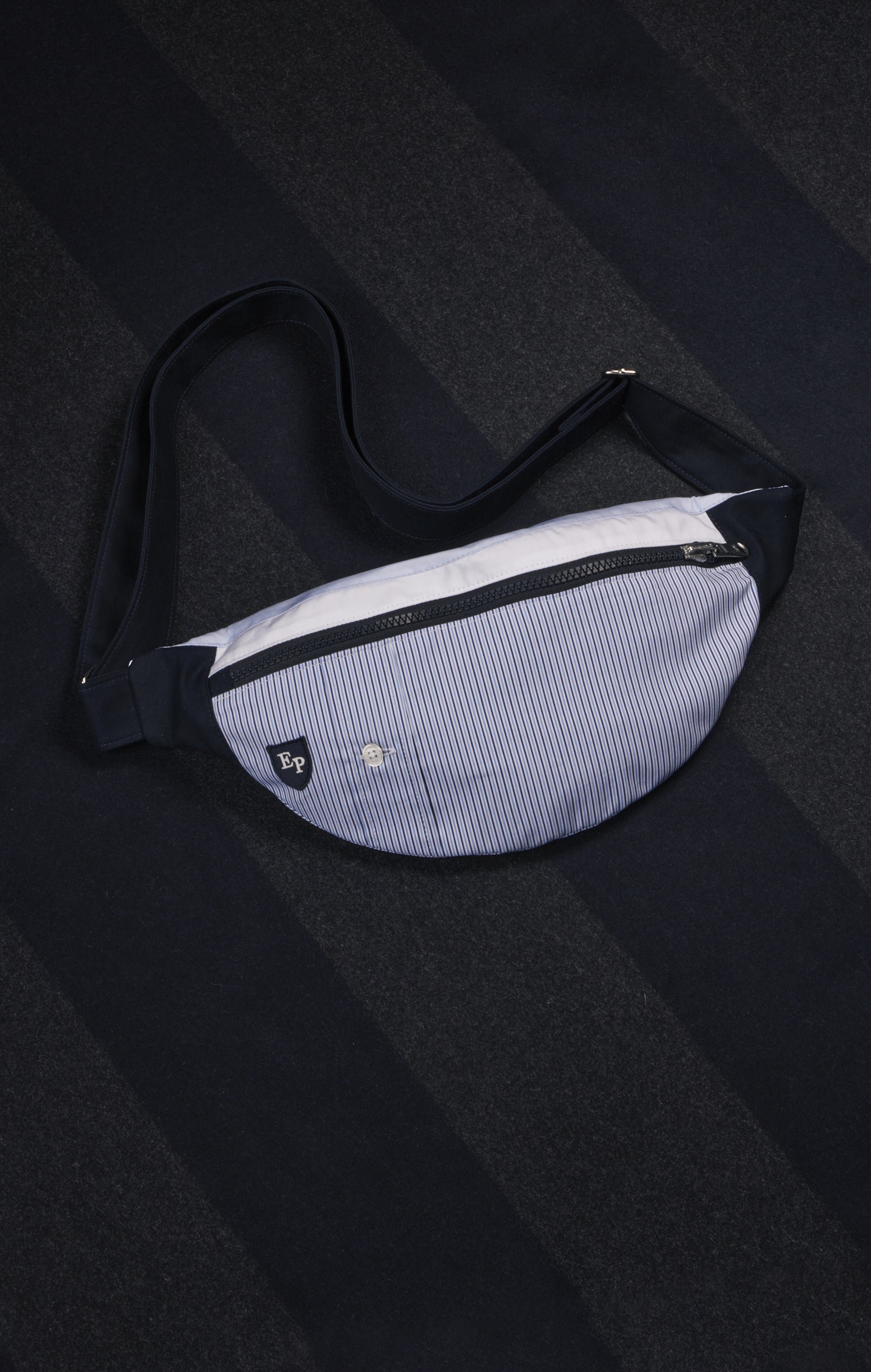 Ce sac banane a été confectionné à partir de chutes de tissus issues de chemises upcyclées pour créer d'autres pièces de cette collection Pap’Atelier, la présence d'un bouton ovale siglé sur l'empiècement provenant d'une patte de boutonnage en offre un subtil rappel. Fidèle à notre démarche d’upcycling, cette banane rayée ciel et blanche intègre des zips récupérés sur des pièces historiques, tandis que les deux boucles en métal sont neuves pour garantir son confort et sa solidité. Pratique et fonctionnelle, cette banane unisexe dispose d’une poche intérieure zippée et d’une sangle réglable pour s’adapter à toutes les silhouettes. Ses dimensions généreuses (37 x 15,5 cm) en font un accessoire idéal pour accompagner vos déplacements de tous les jours avec style et engagement. Cet accessoire est une pièce unique disponible sur notre site internet pour une durée limitée.