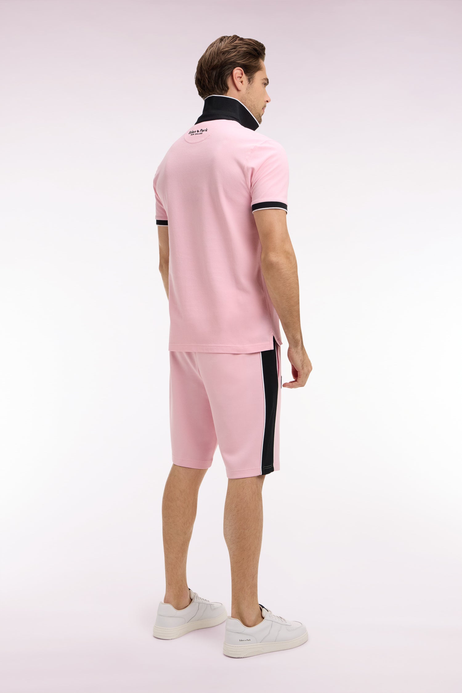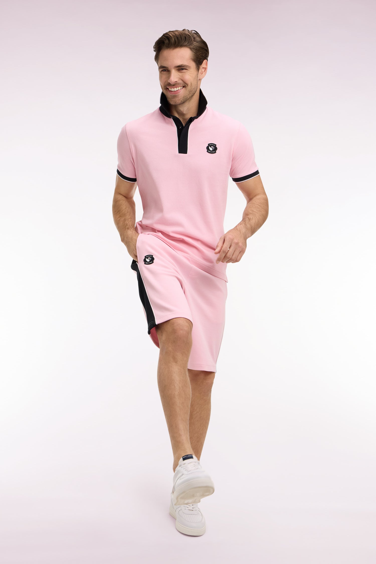 Associez ce short pour homme de la collection rugby Nouvelle-Zélande à son sweatshirt zippé coordonné pour un style plein d’allure, de la Maison jusqu'au stade. En molleton interlock noir ou rose, ce short à coupe droite est rehaussé d’un écusson en gomme 3D et de cordons de serrage siglés, clin d'œil à l’héritage rugby de notre Maison. Ses découpes le long des jambes sont soulignées d'un passepoil contrasté qui dynamise l'allure.