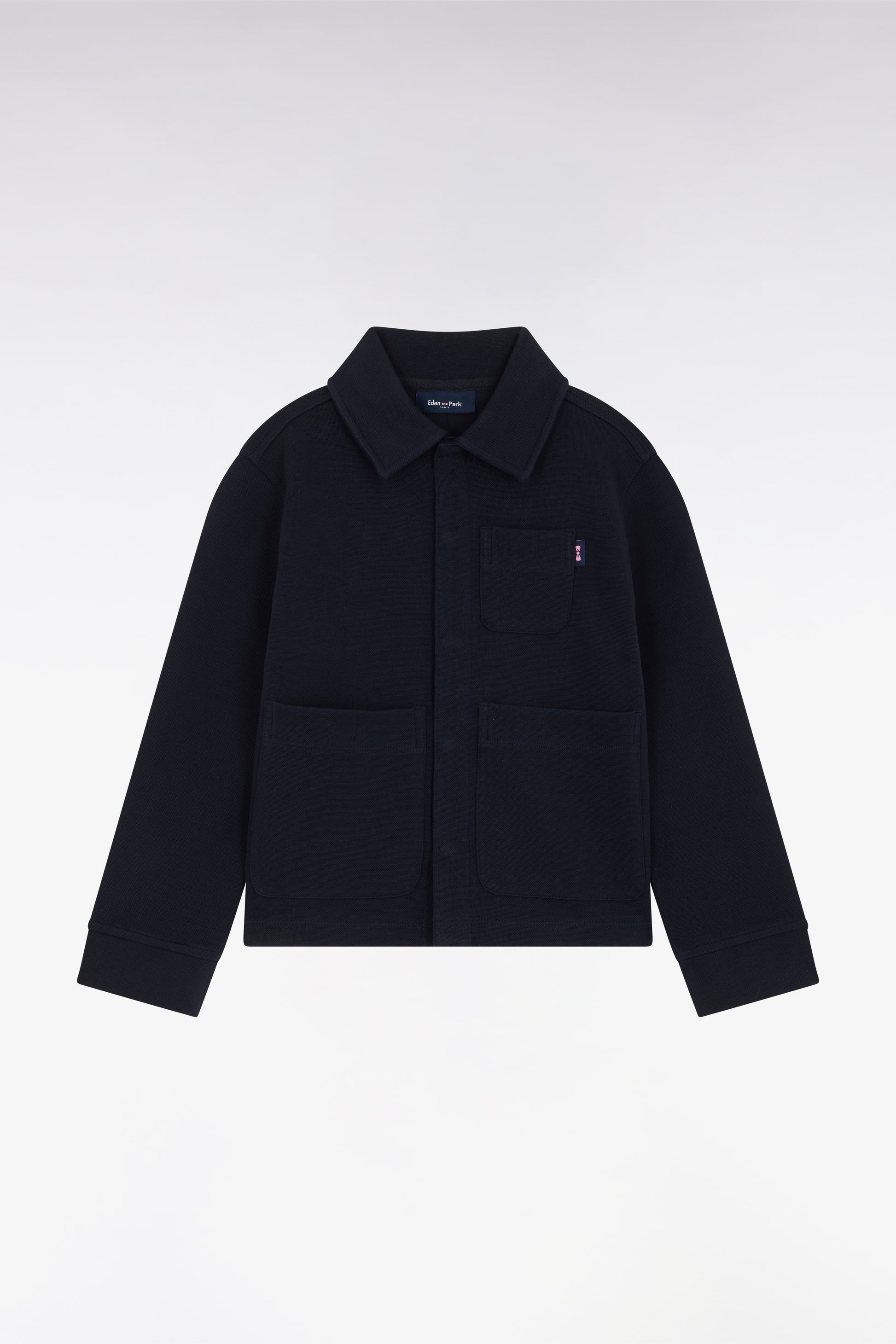 Surchemise en interlock marine à poches plaquées
