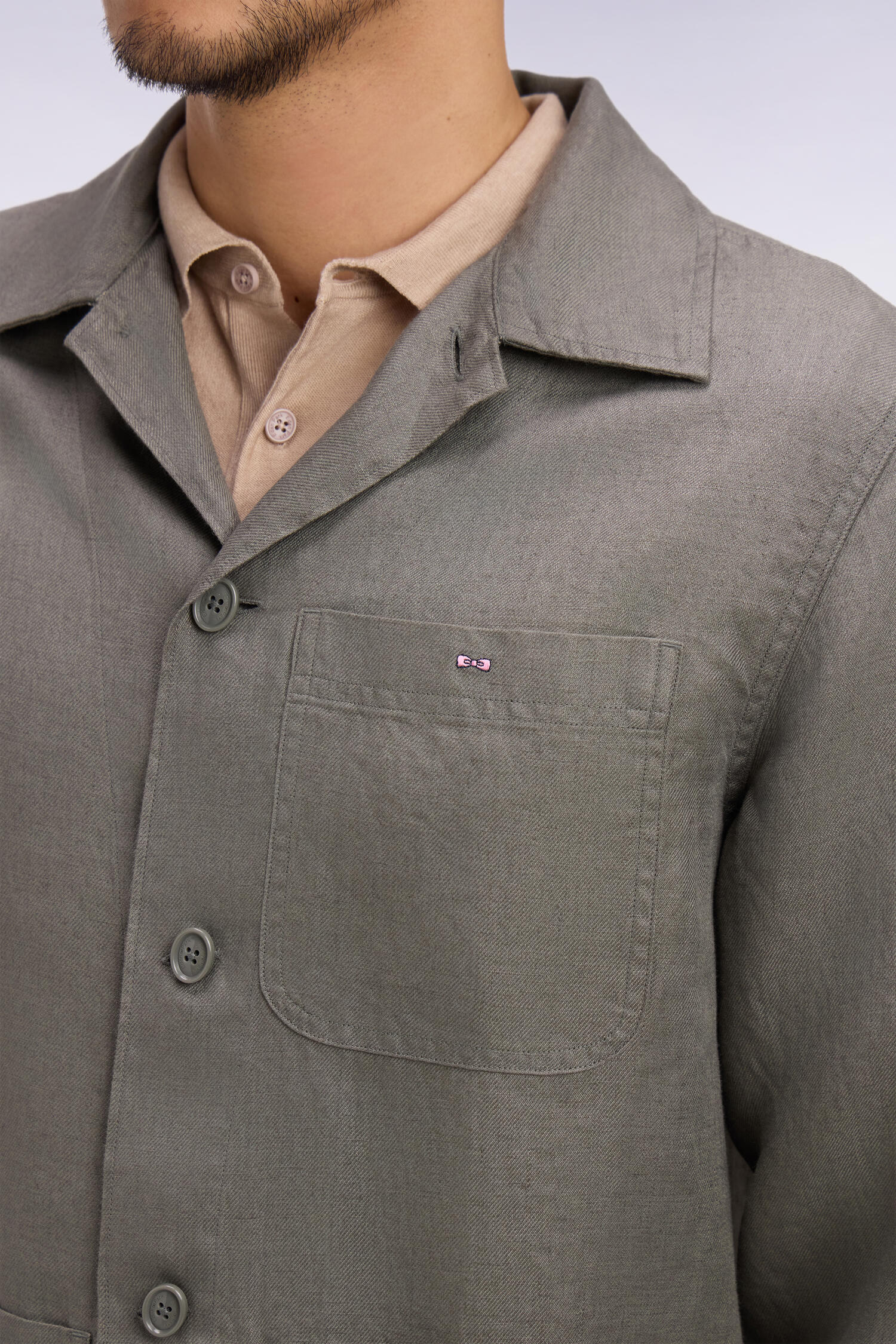 Surchemise en lin et coton kaki