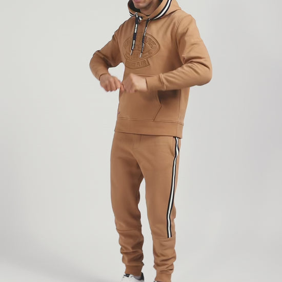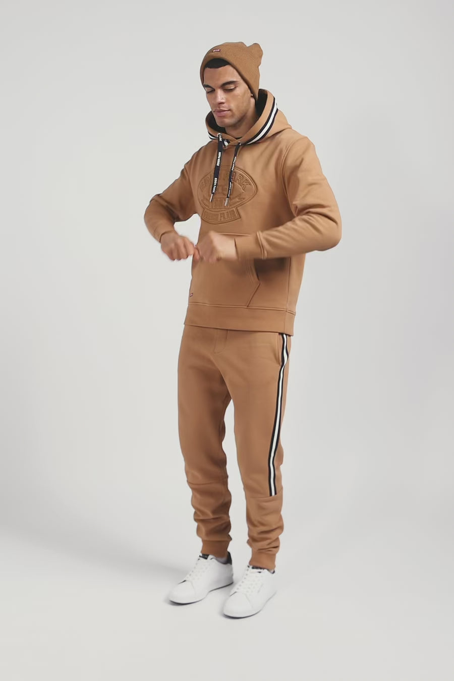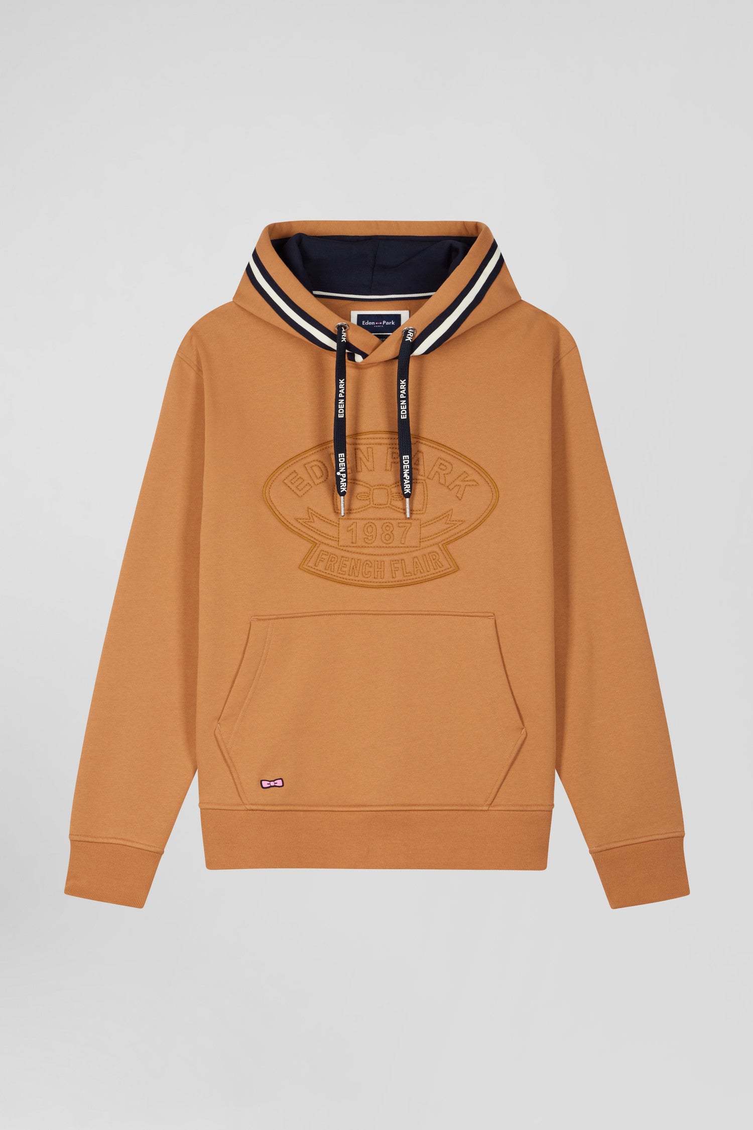 Sweatshirt à capuche en coton mélangé camel broderie matelassée coupe Relaxed