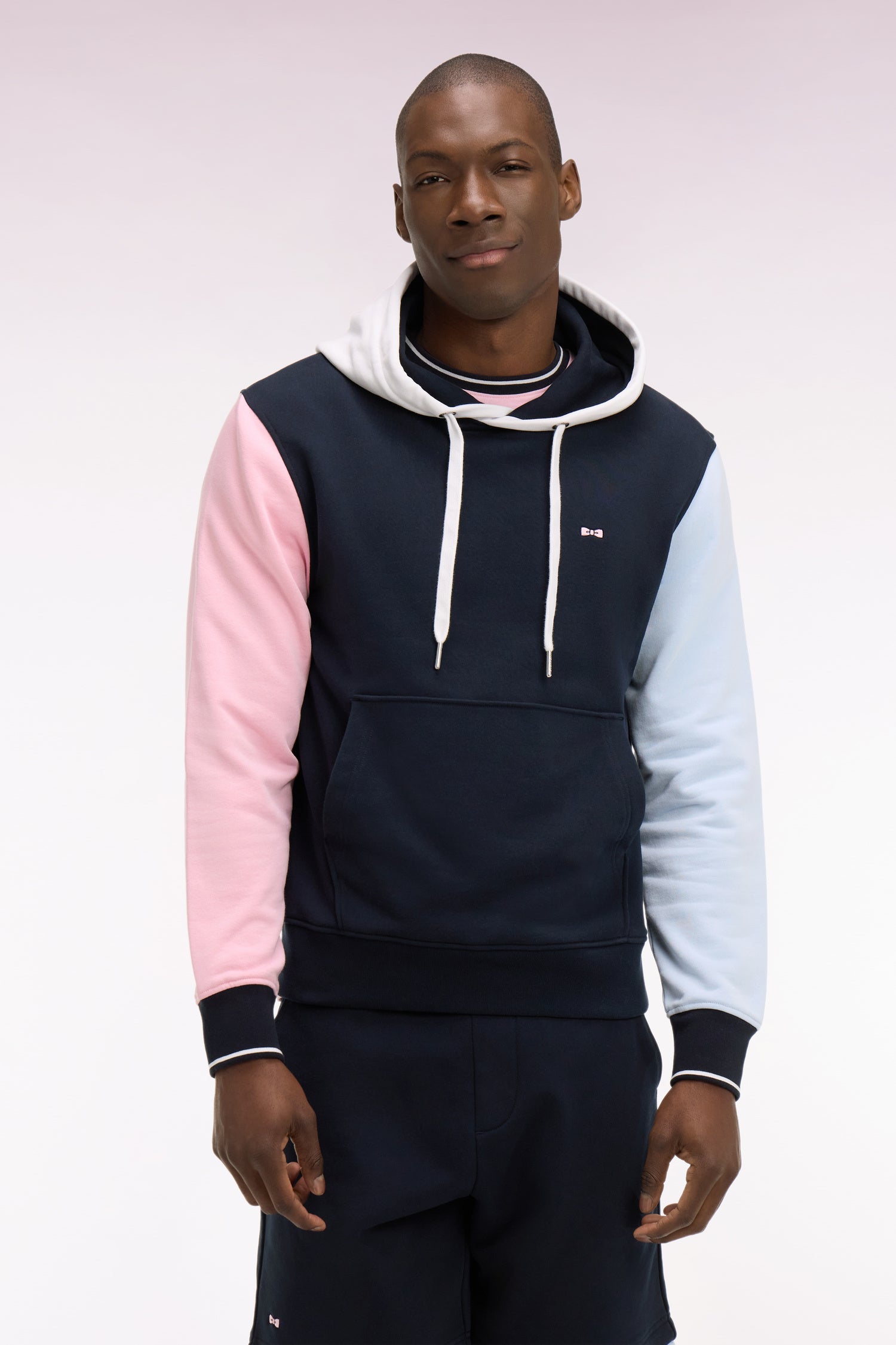 Sweatshirt à capuche en molleton coton découpes tricolores