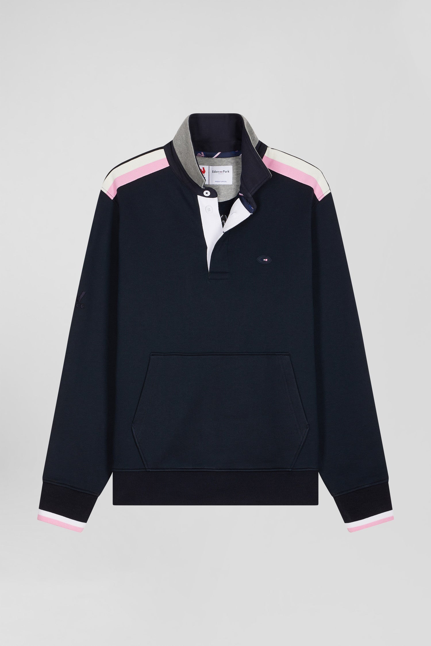 Sweatshirt col maillot en coton bleu marine broderie XV de France coupe Regular