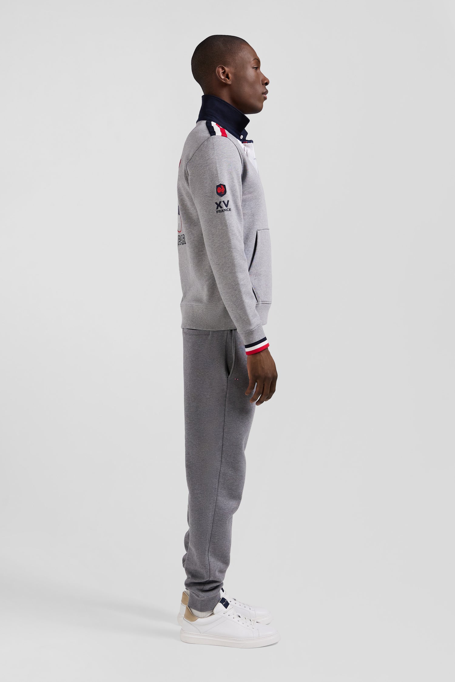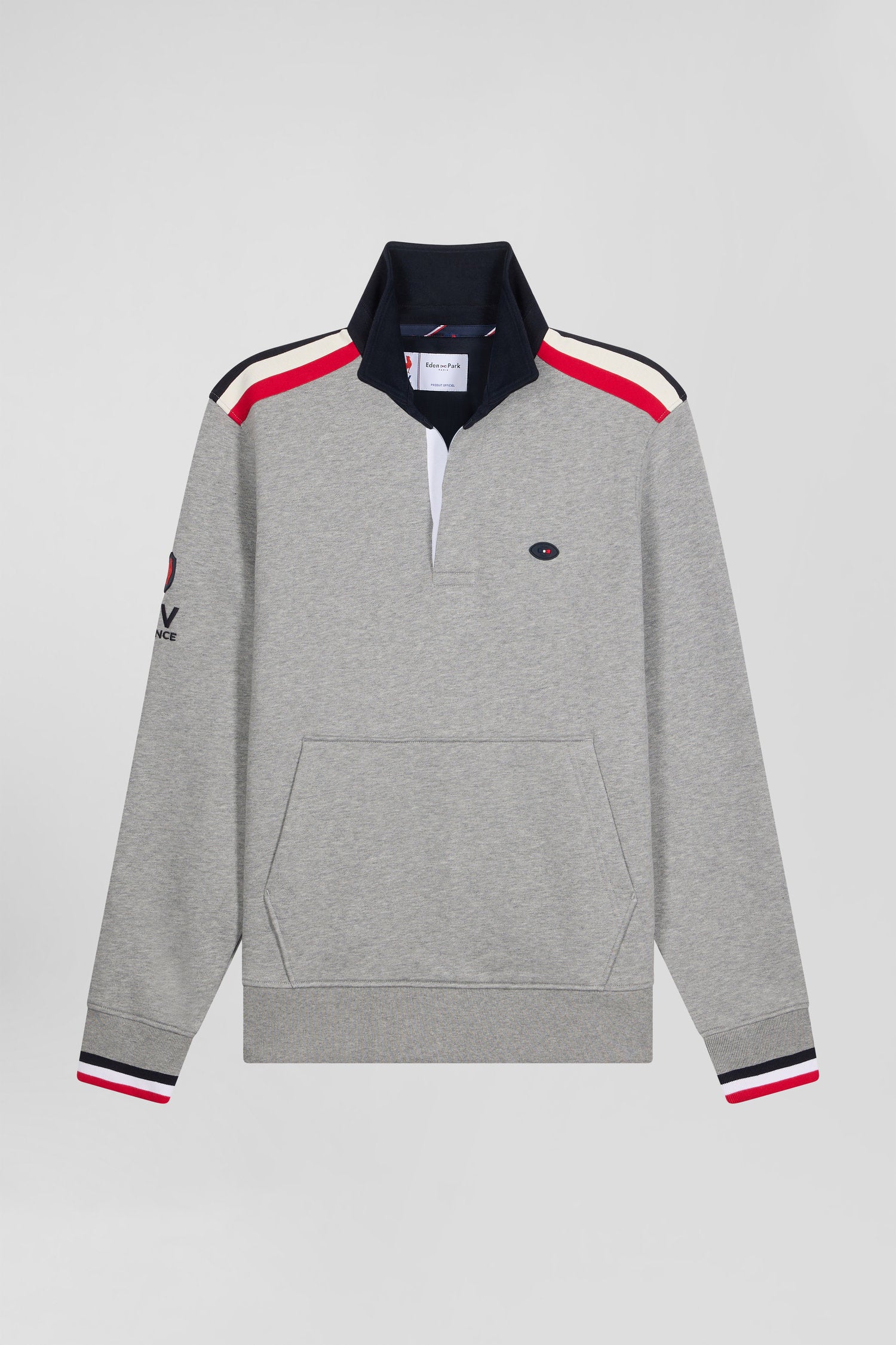 Sweatshirt col maillot en coton gris chiné broderie XV de France coupe Regular