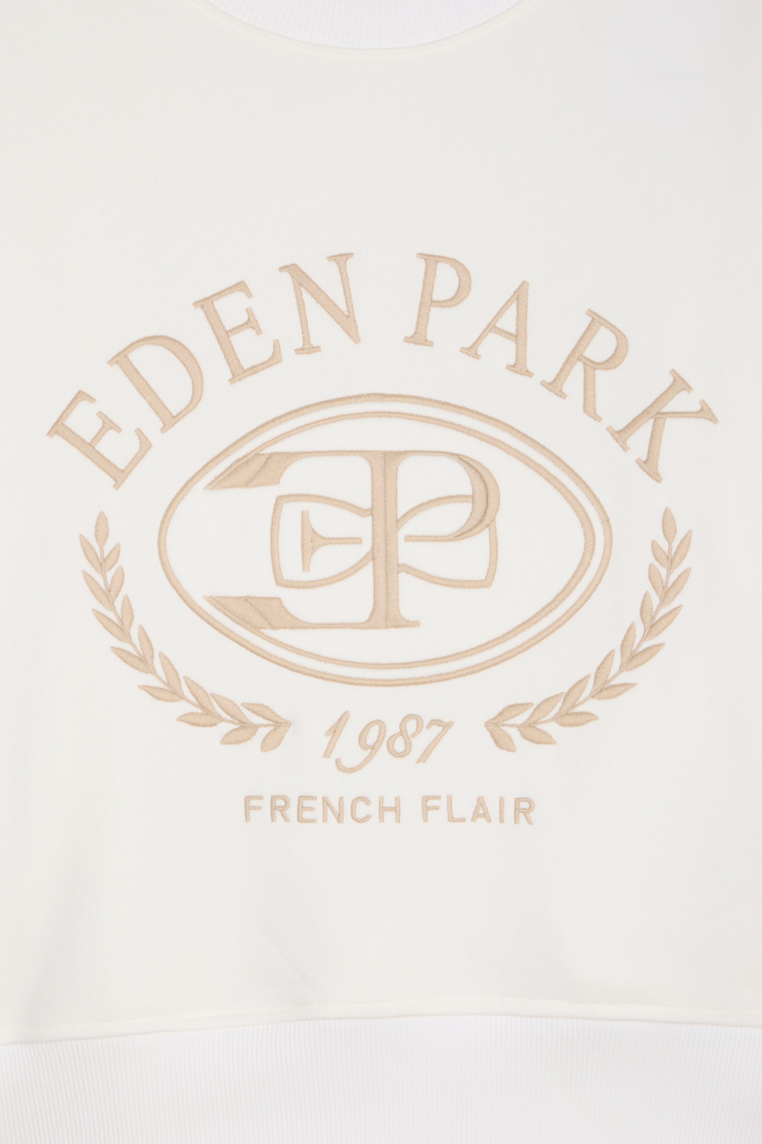 Notre sweatshirt femme à manches longues adopte une coupe relaxed qui mêle confort moderne et allure tendance. Son col rond, souligné de finitions en bords-côtes aux poignets, au col et au bas du corps, structure la silhouette sans la contraindre. Sa broderie frontale aux accents Ivy League rétro signe cette pièce sport-chic dont le style se déploie dans une sélection de polos et de pièces masculines. Facile à associer à un jean ou un pantalon tailleur beige fluide, ce sweatshirt offert en rose ou en écru revisite l’esthétique college dans une version douce, féminine et contemporaine ultra désirable. À porter en semaine comme en week-end pour mettre en valeur votre style.