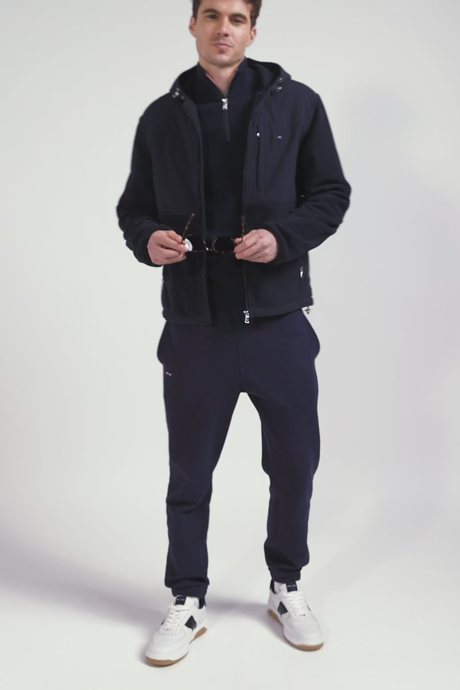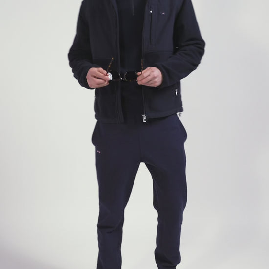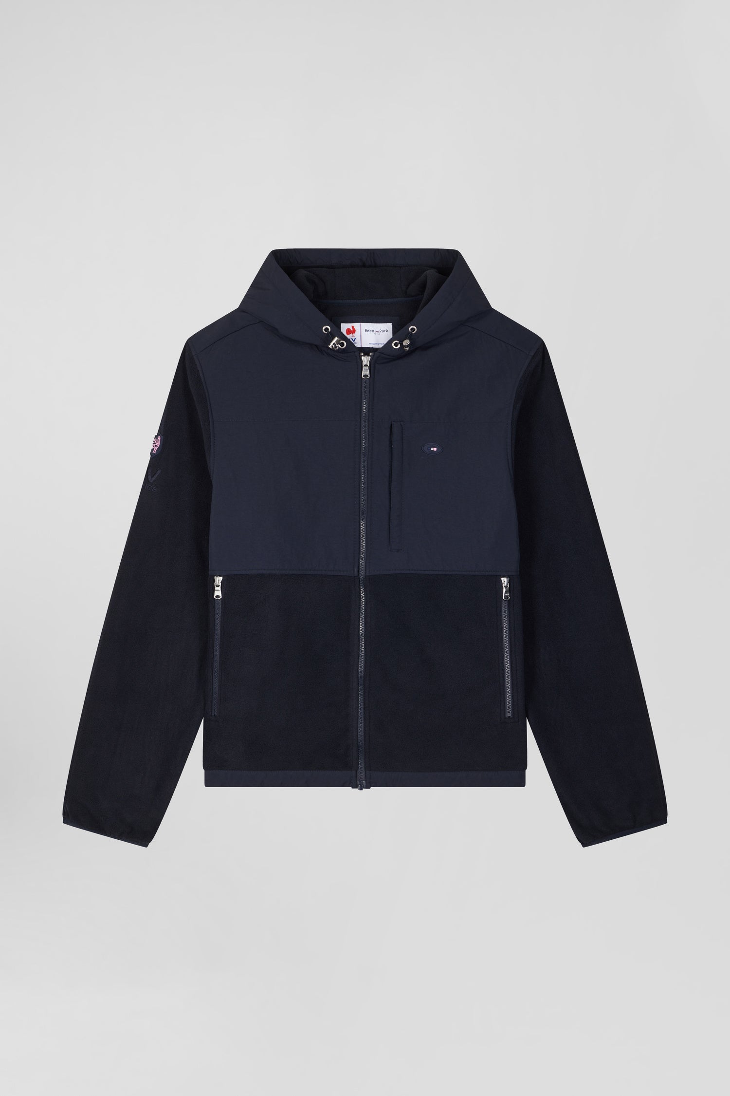 Ce sweatshirt bleu marine à zip droit et capuche intégrée se porte aussi bien en sweatshirt qu'en blouson de mi-saison. Ses détails de poches zippées permettent d'ajouter praticité et structure à ce sweatshirt masculin bicolore. Liseré contrastée et ornements de manches soulignent le soin porté par notre Maison aux moindres détails de notre vestiaire.