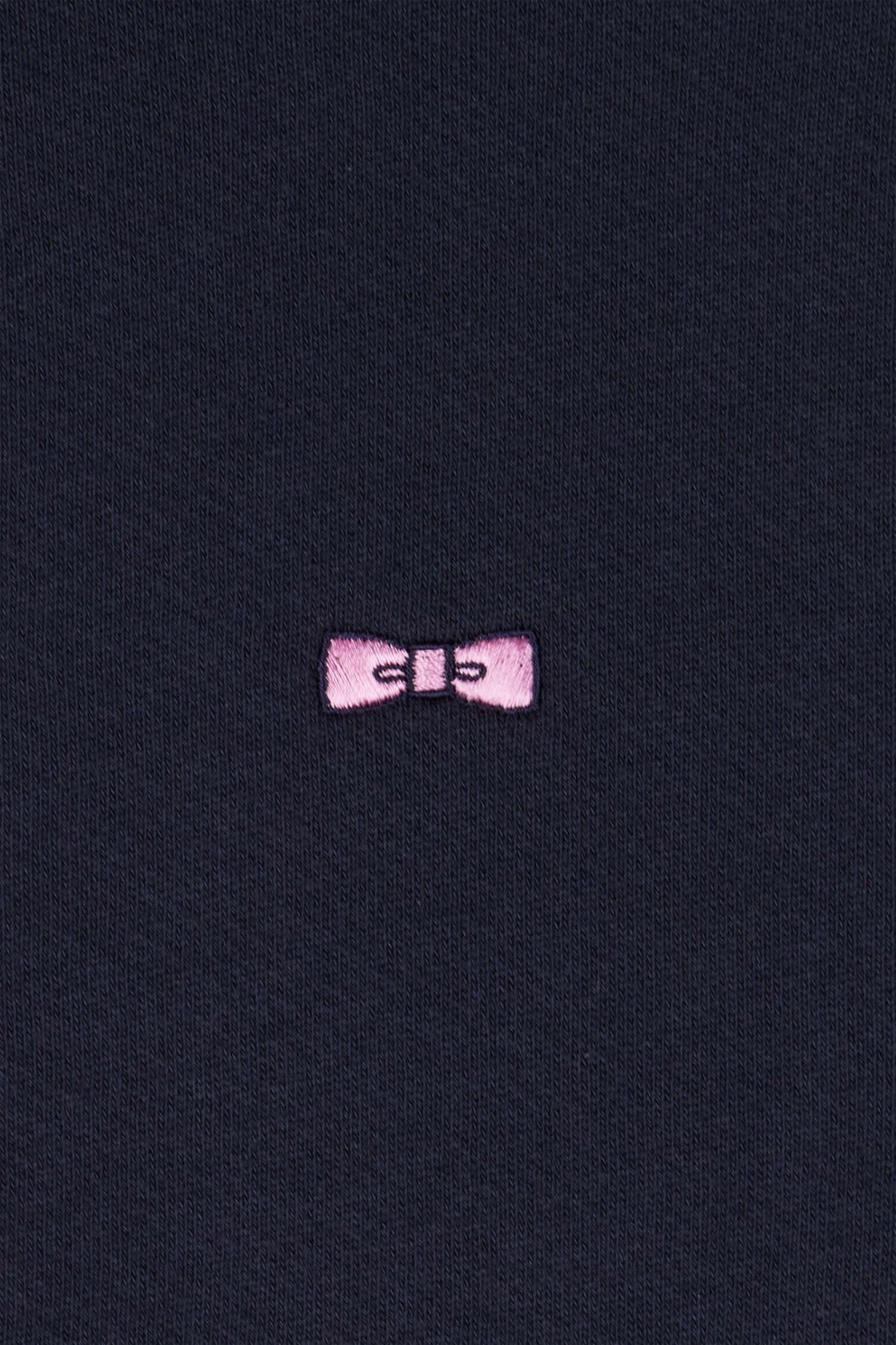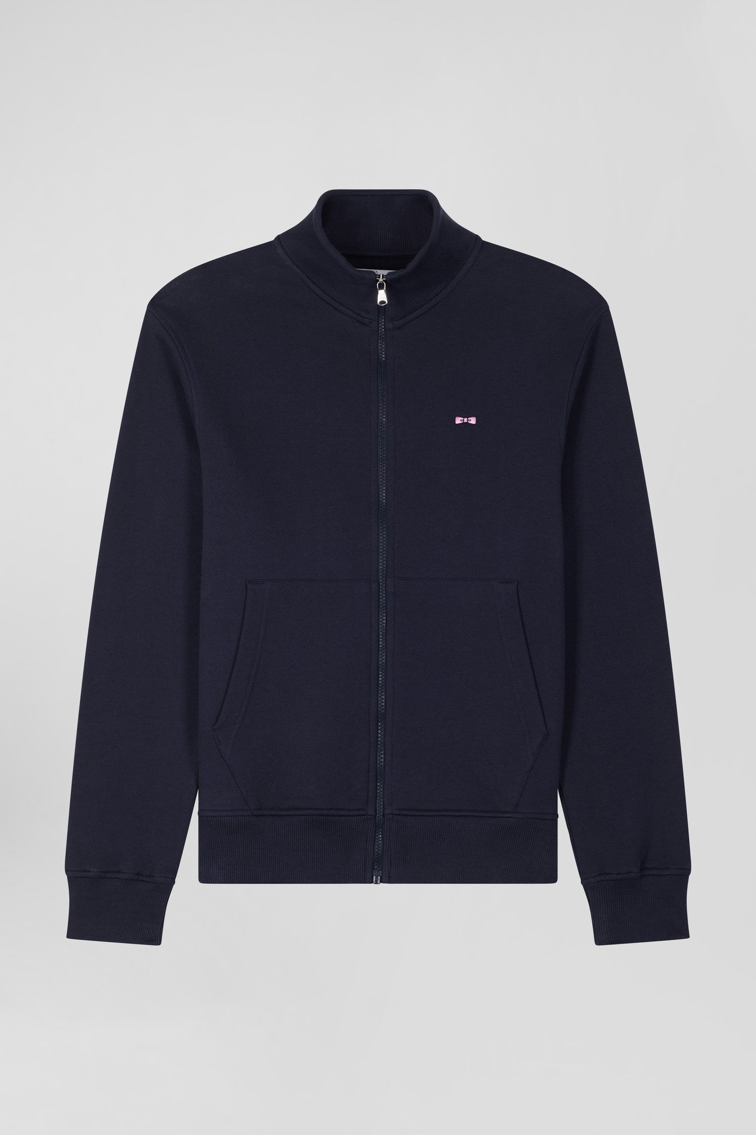 Sweatshirt zippé à col montant en molleton coton uni bleu marine coupe Regular
