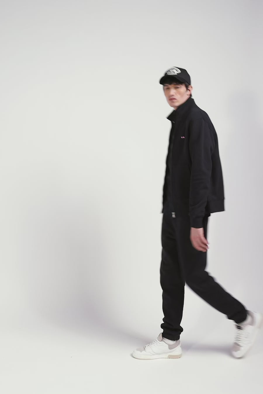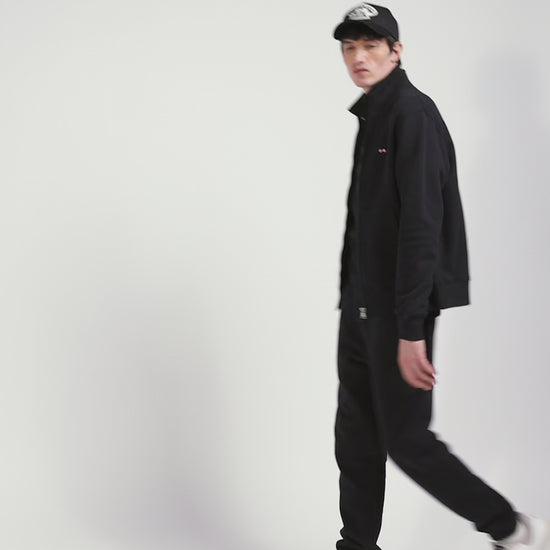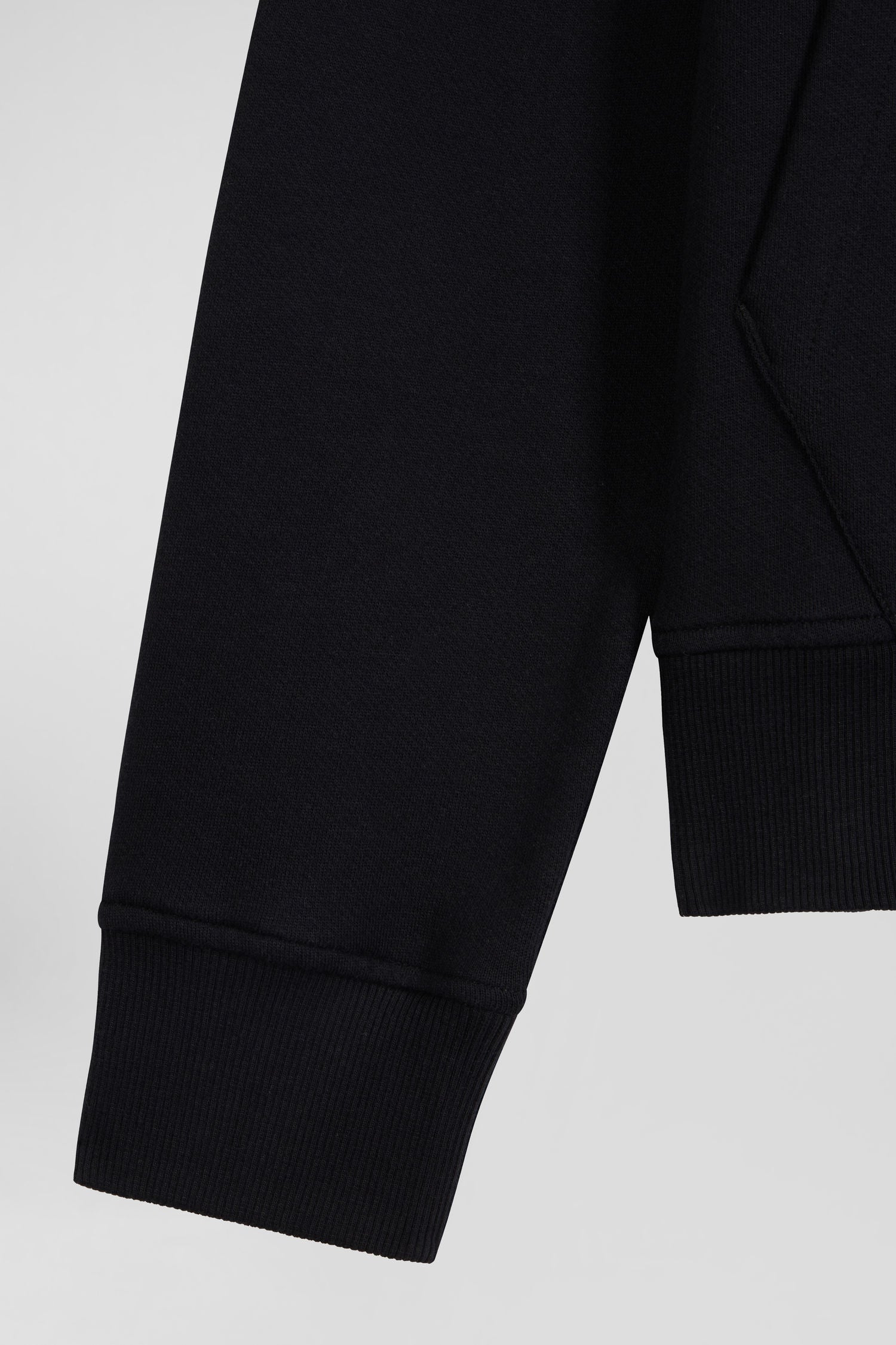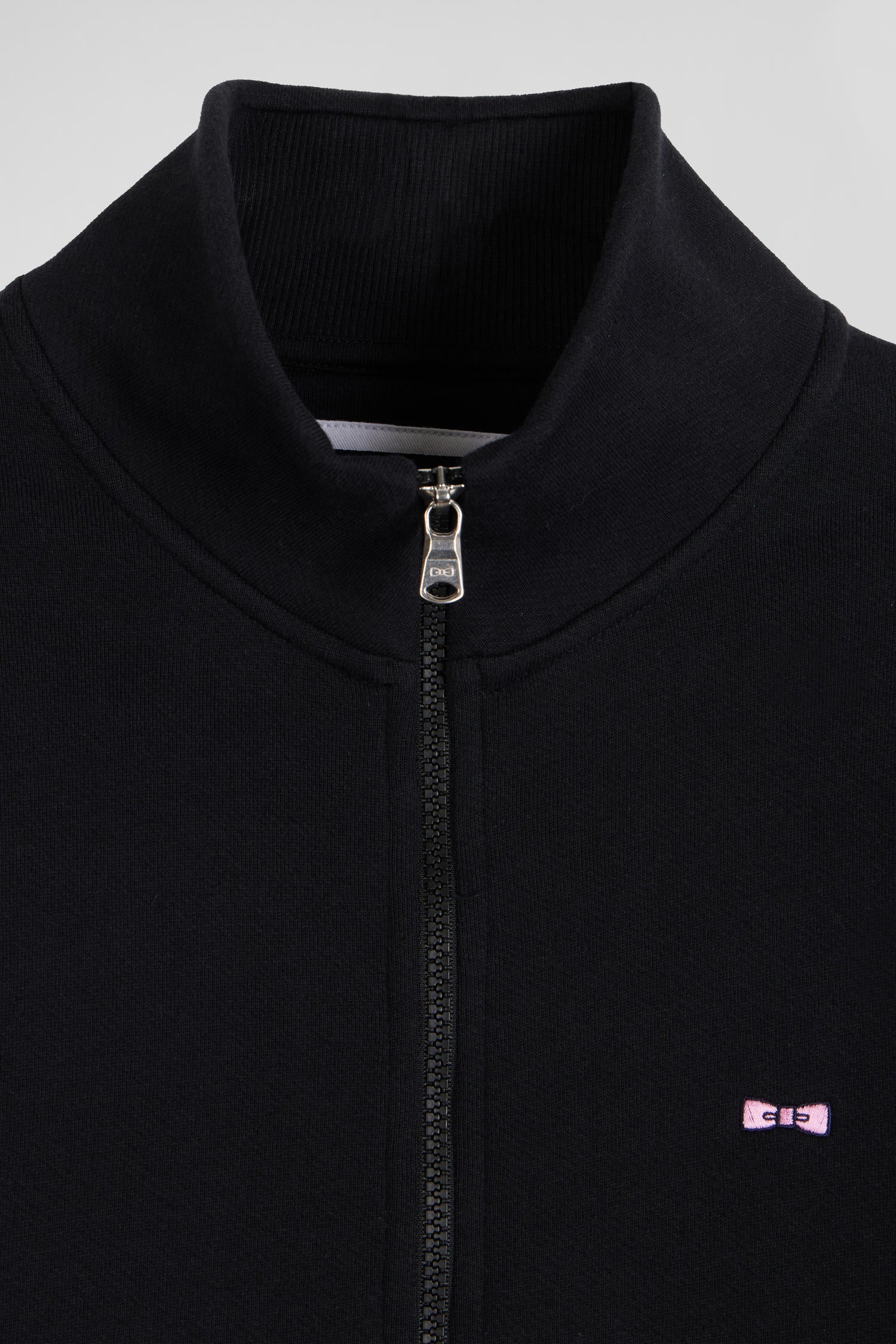 Sweatshirt zippé à col montant en molleton coton uni noir coupe Regular