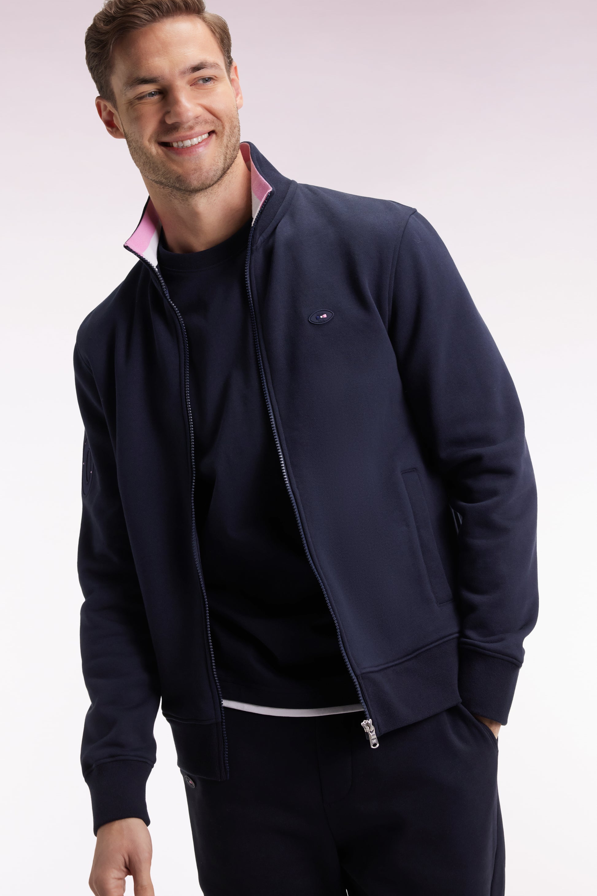 Sweatshirt zippé en coton marine broderie 10 coupe droite