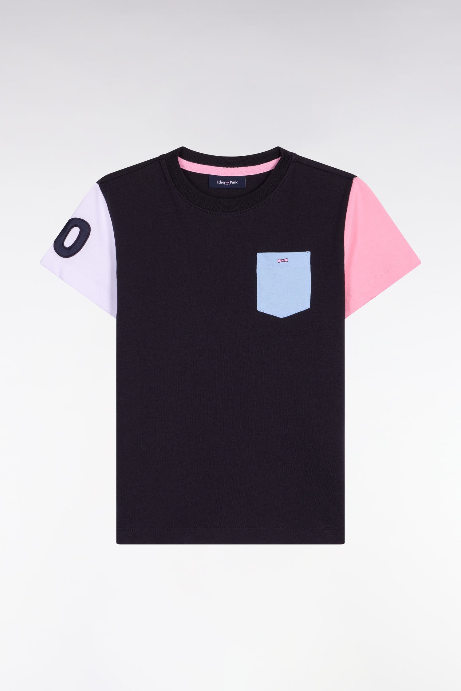 T-shirt à manches courtes en coton marine à manches bicolore coupe droite