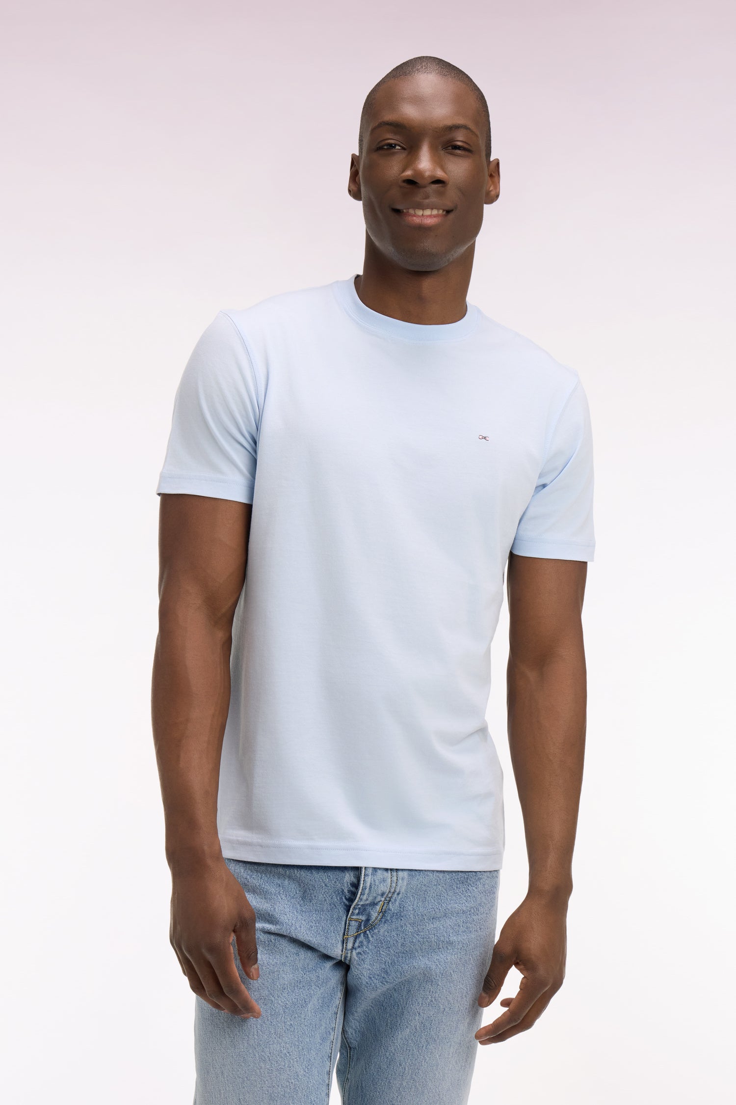 T-shirt à manches courtes en coton Pima bleu ciel brodé coupe regular