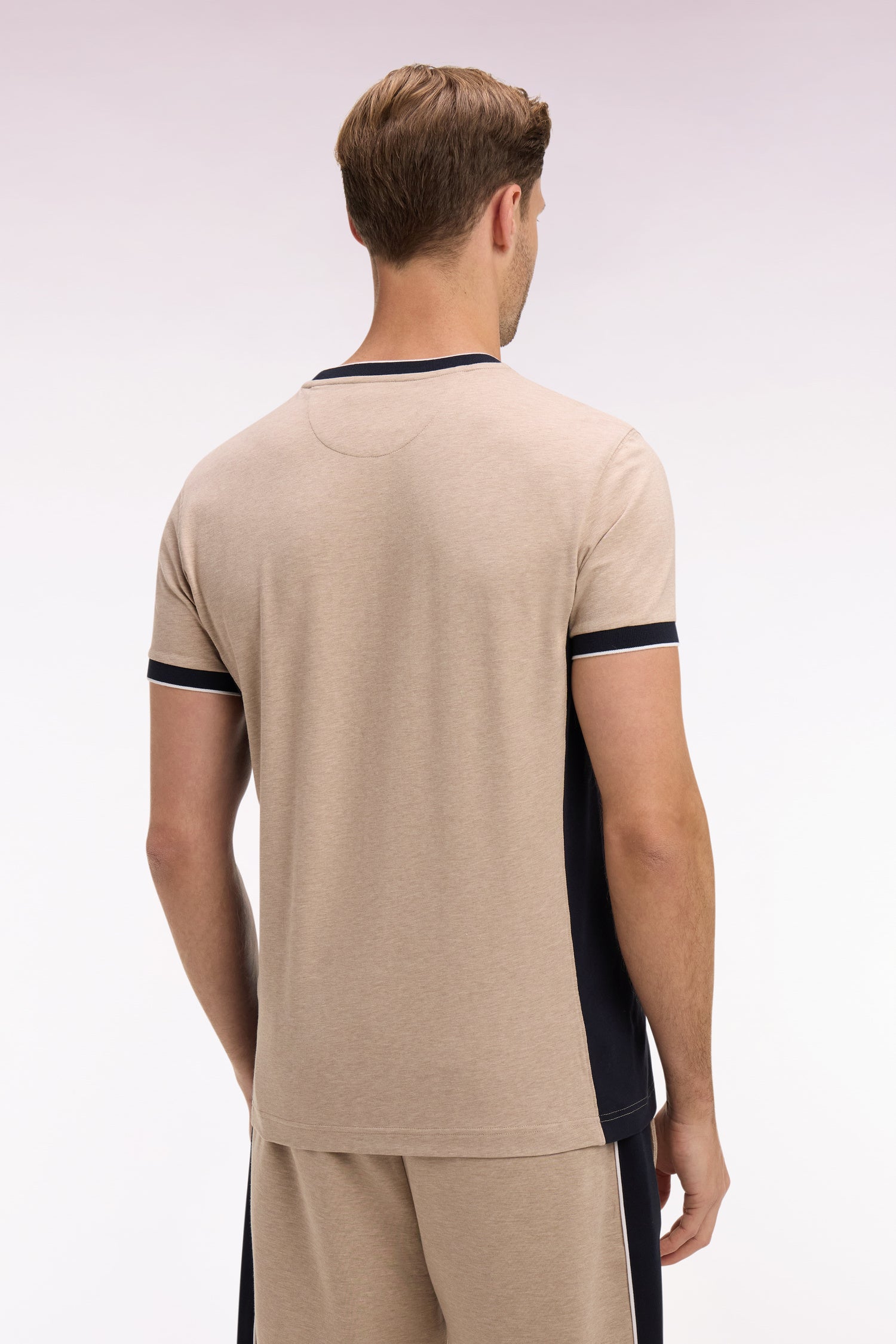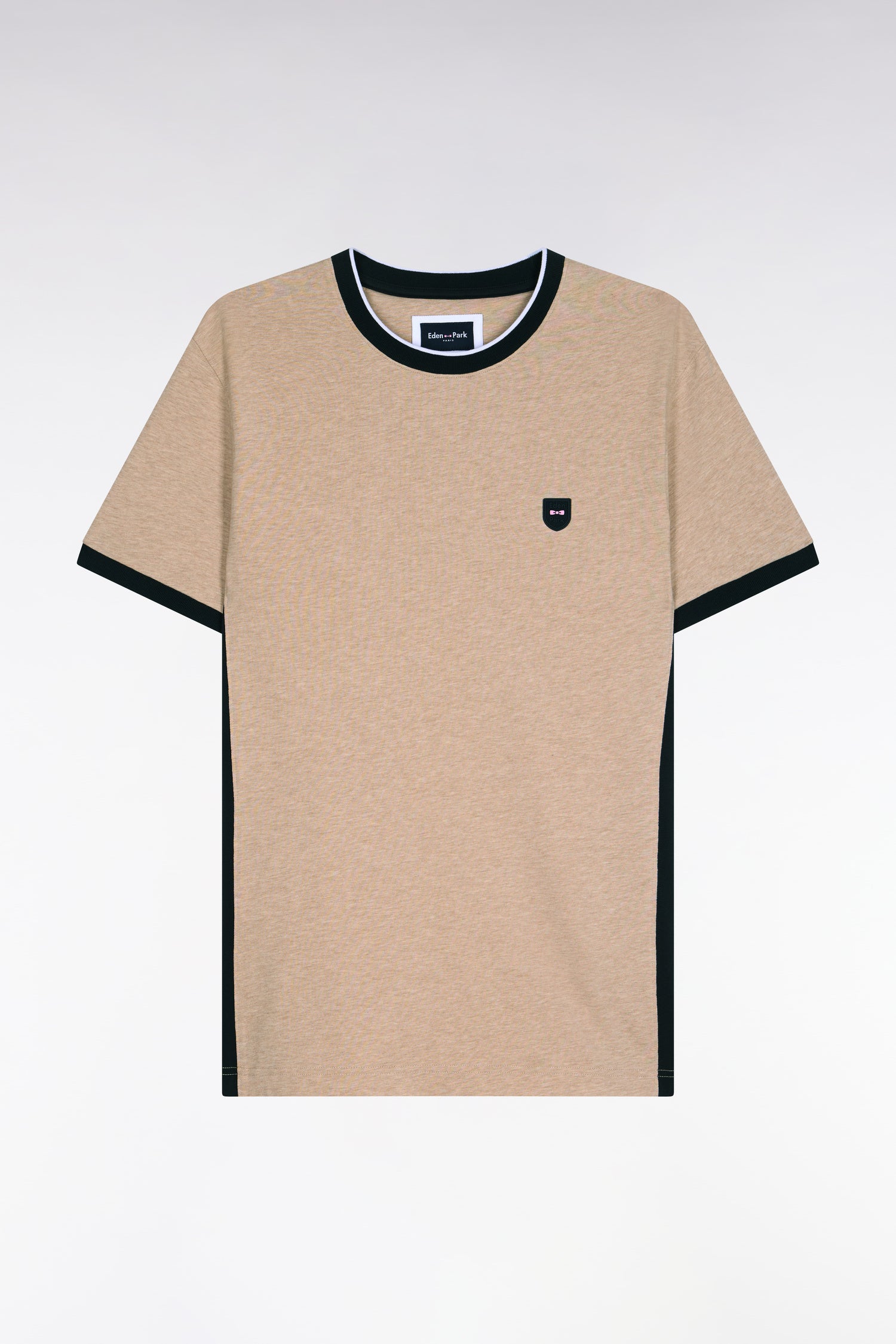 Ce T-shirt bicolore à la coupe légèrement ajustée présente un badge poitrine à l'emblème de notre Maison, un détail qui s'ajoute à ses couleurs choisies dans nos codes emblématiques. Inspirées des maillots de rugby, ses découpes contrastées réalisées grâce au savoir-faire coupé-cousue des ateliers Eden Park structurent la silhouette jusque dans vos moments de détente.