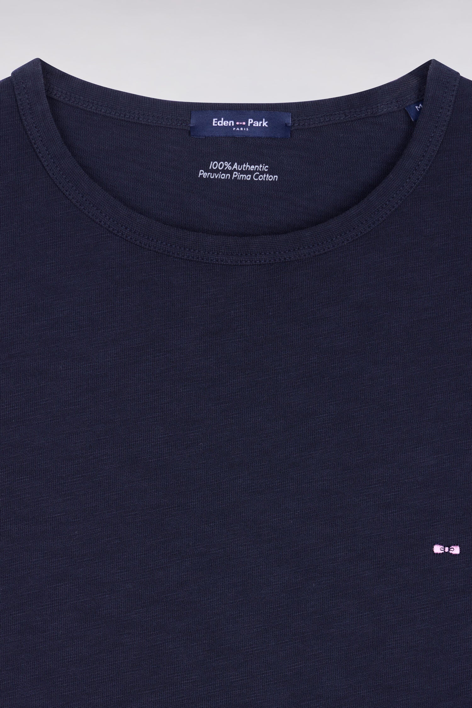 Ce T-shirt droit en jersey de coton slub affirme l'intemporalité et la durabilité de notre vestiaire. Doté d'un col rond seyant il se distingue par sa petite broderie nœud papillon rose, signature discrète et élégante de notre Maison. Ce basique de qualité traversera les saisons avec style. Un vrai pilier pour donner libre cours à votre créativité mode.