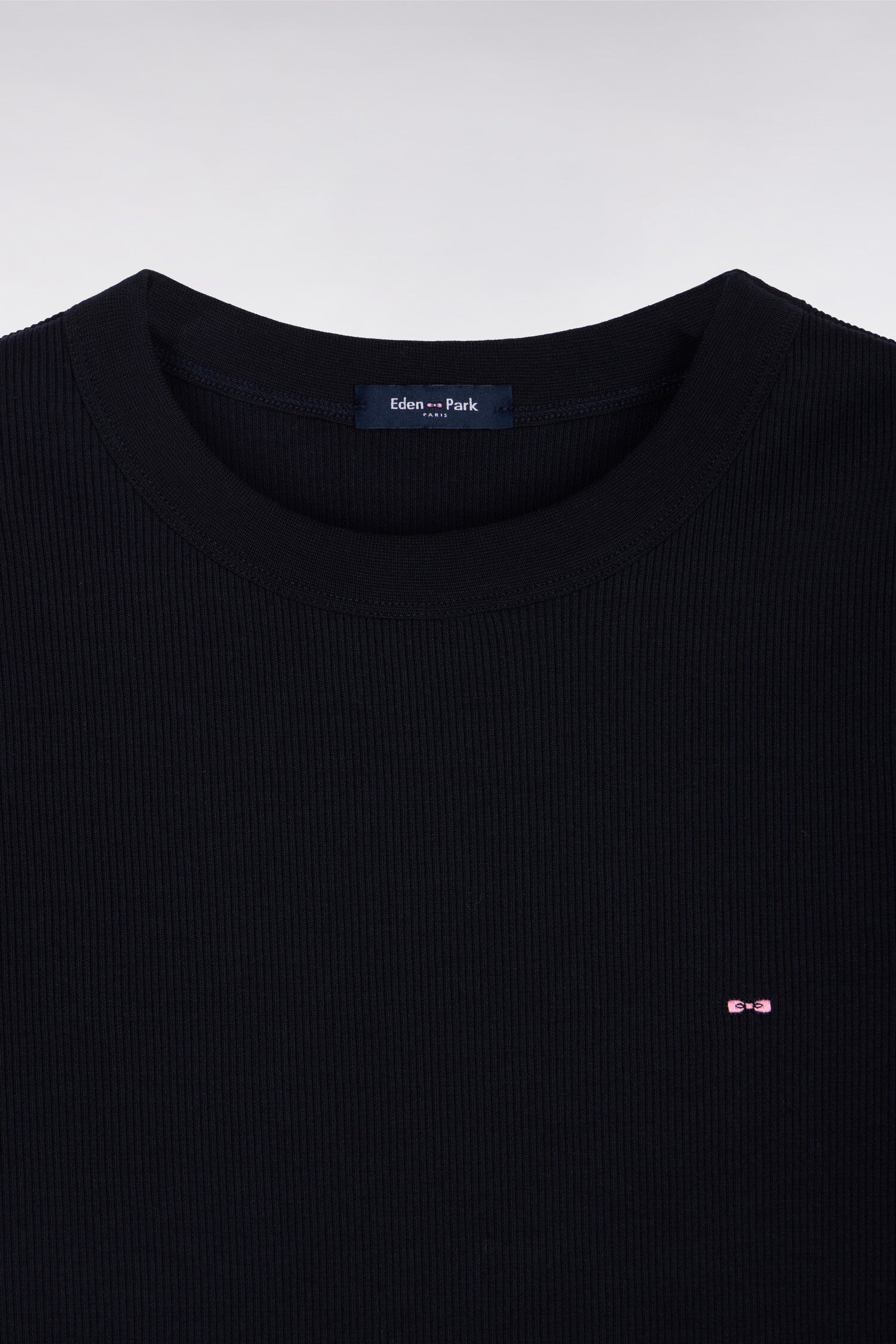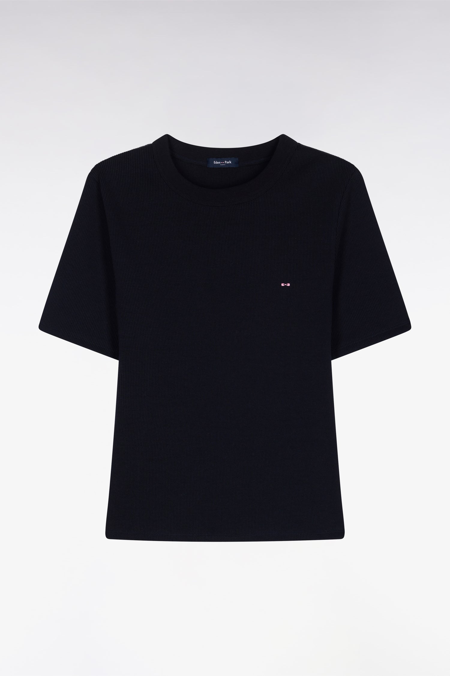 Ce t-shirt femme encolure ronde à la coupe slim ajustée est confectionné en modal et coton pour vous offrir un toucher naturellement doux et confortable. Son tricotage côtelé met subtilement en valeur la silhouette, tandis que le nœud papillon rose brodé sur la poitrine signe cet intemporel avec discrétion. À porter sous une chemise ouverte, glisser dans un jean taille haute ou à associer à un cardigan léger pour une allure effortless chic en toutes occasions.