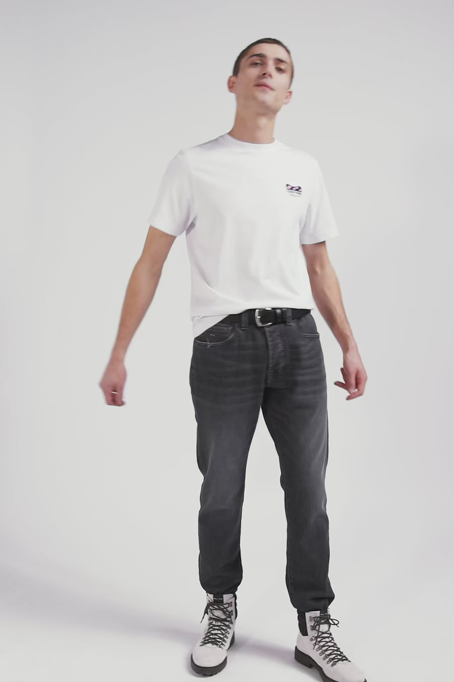 T-shirt manches courtes blanc emblème tissu cravate coupe Regular