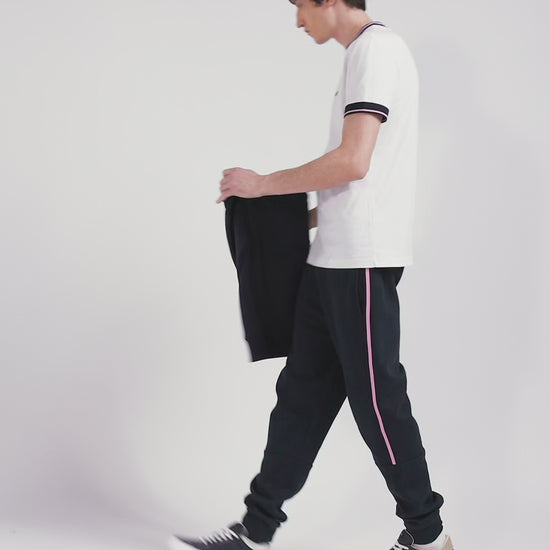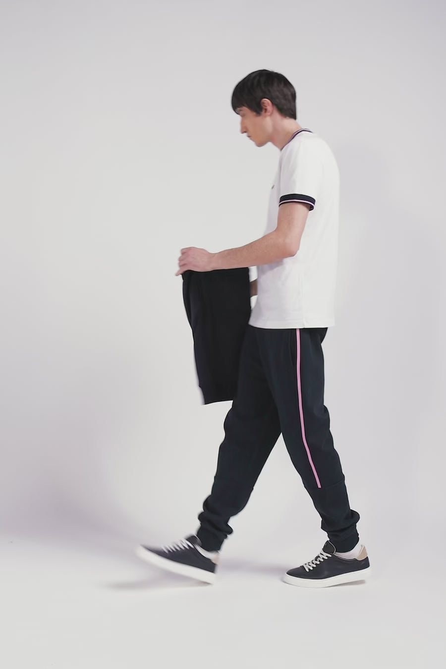 Pantalon jogging en coton mélangé bleu marine galon rayé coupe Regular