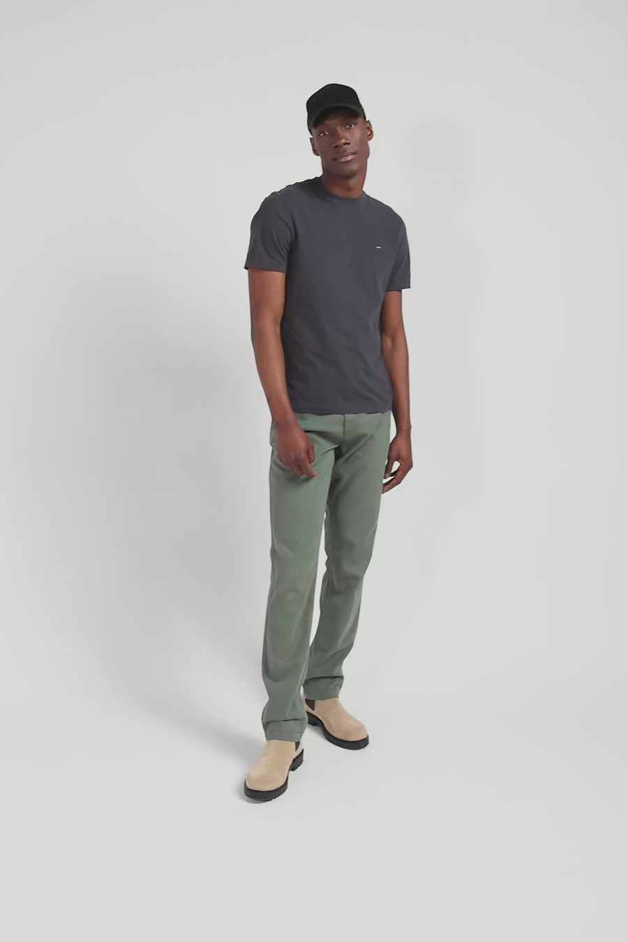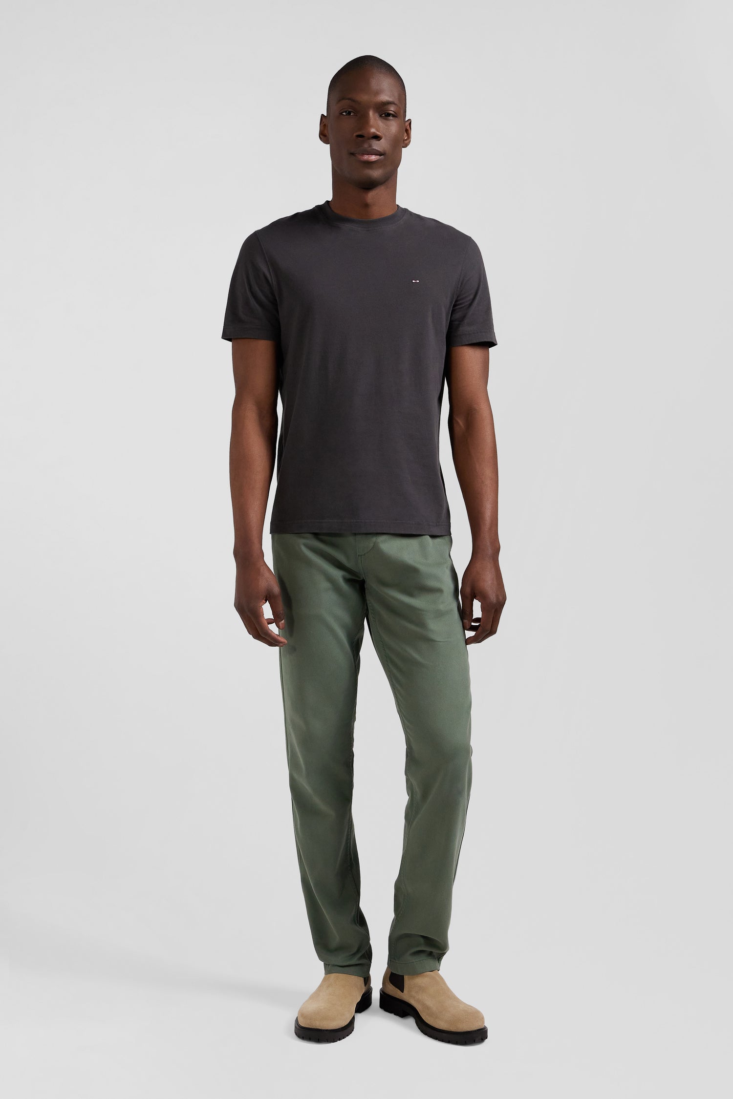 T-shirt manches courtes en coton kaki patch dos coupe Regular