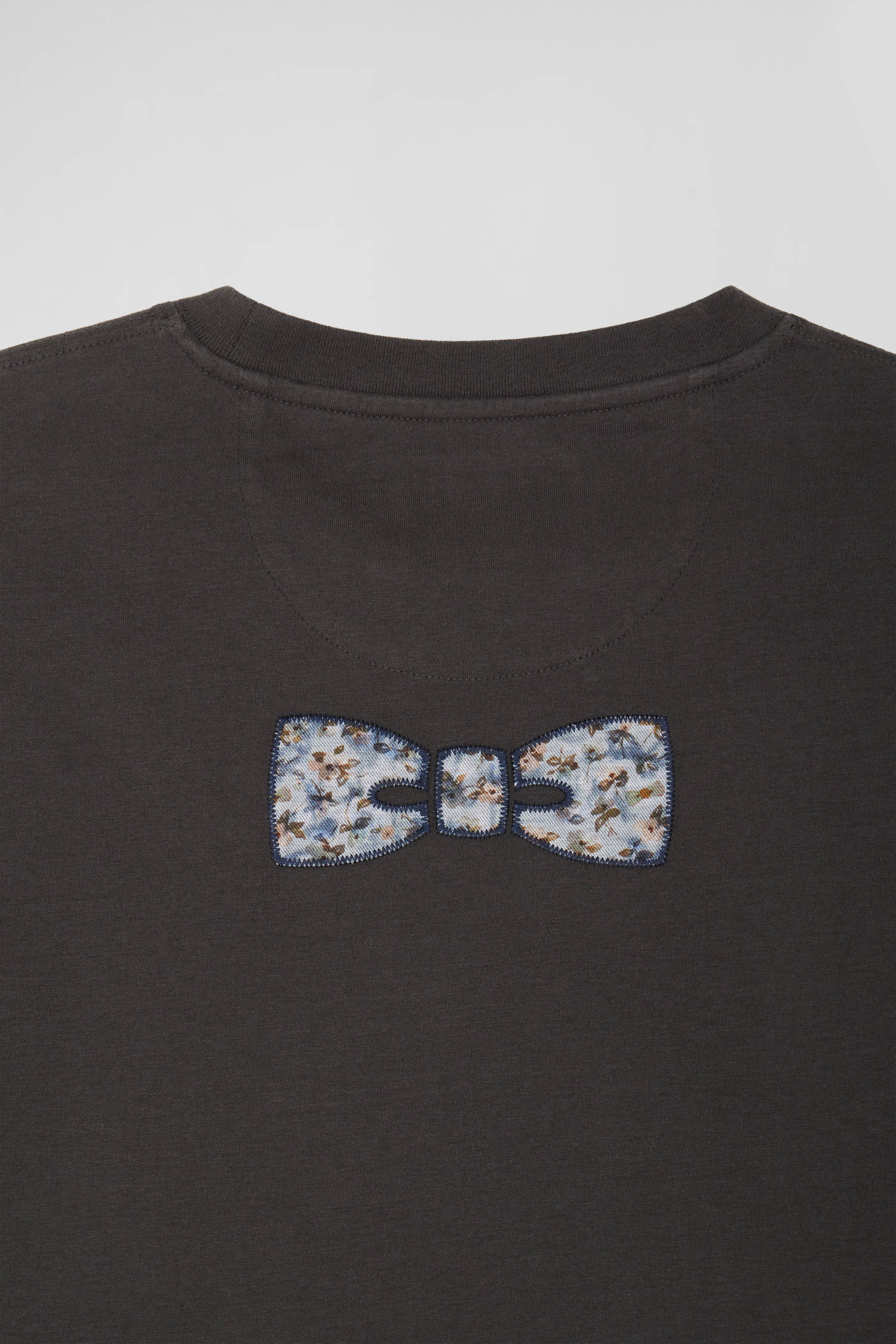 Retravaillé chaque saison, notre emblématique nœud papillon apporte une signature travaillée au vestiaire Eden Park. Ici, il devient un patch en flanelle imprimée apposé dans le dos de ce T-shirt à la coupe droite confortable.