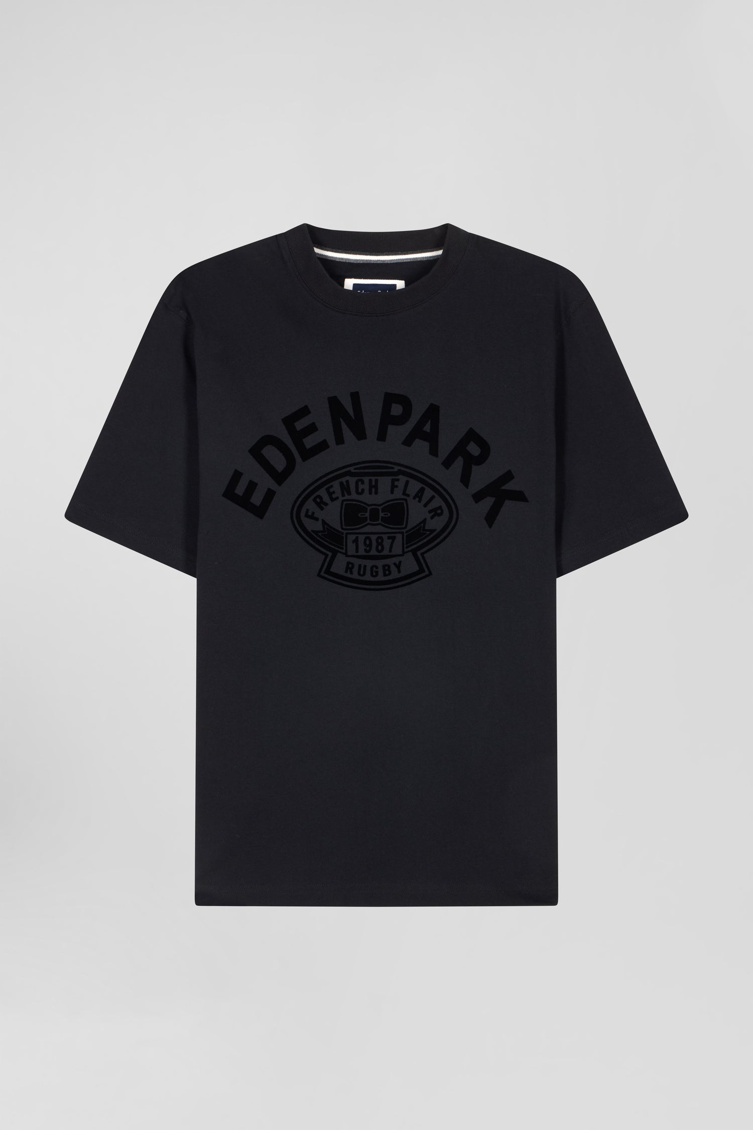 T-shirt manches courtes noir application Eden Park Rugby coupe Oversized