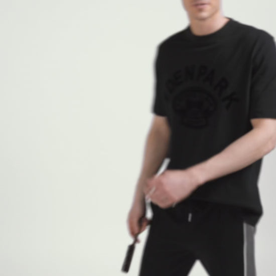 D'inspiration varsity, ce T-shirt pour homme arbore une application façon velours écrue sur fond marine ou ton sur ton pour la version noire. Dans sa coupe oversized, ce T-shirt promet confort et allure au quotidien.