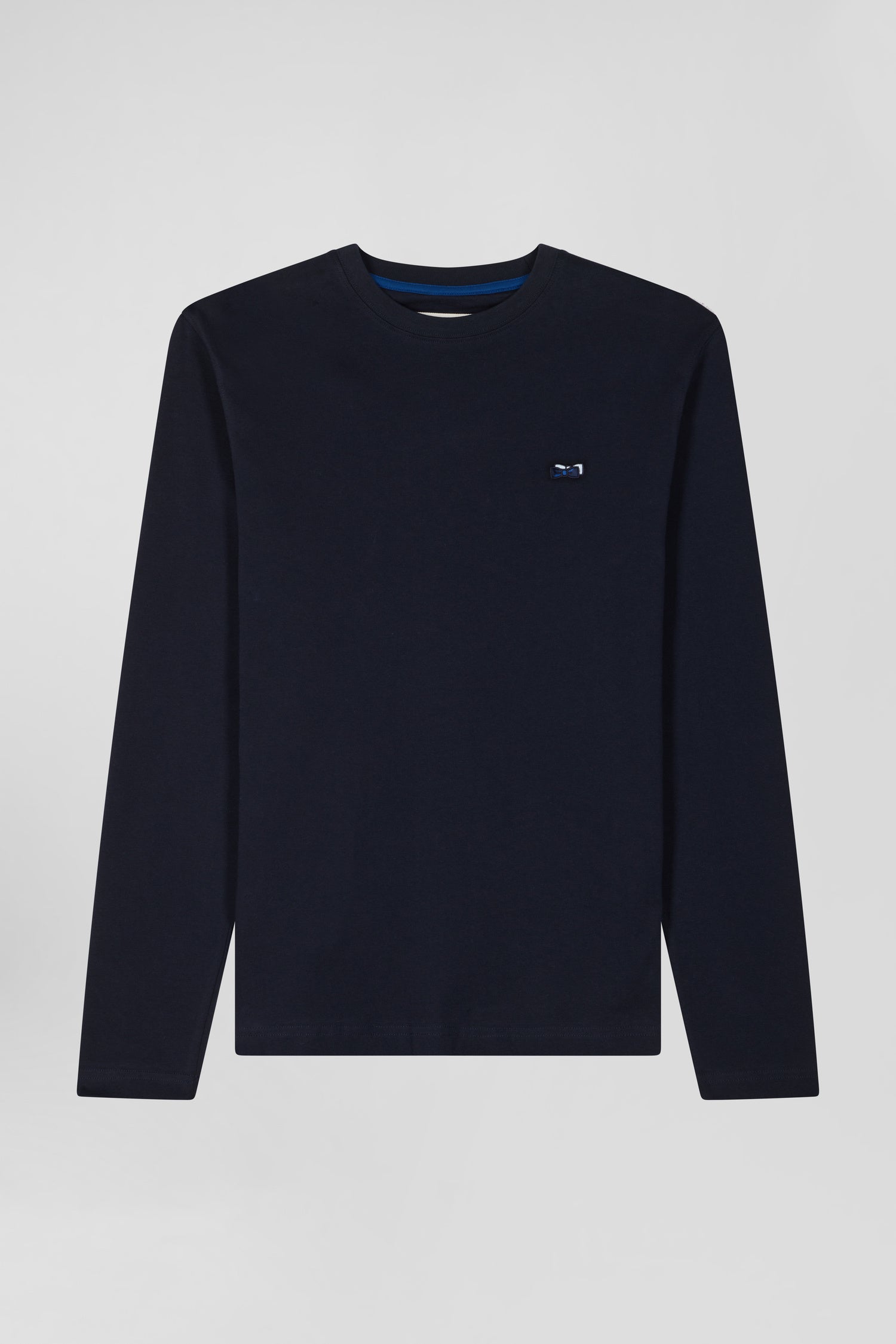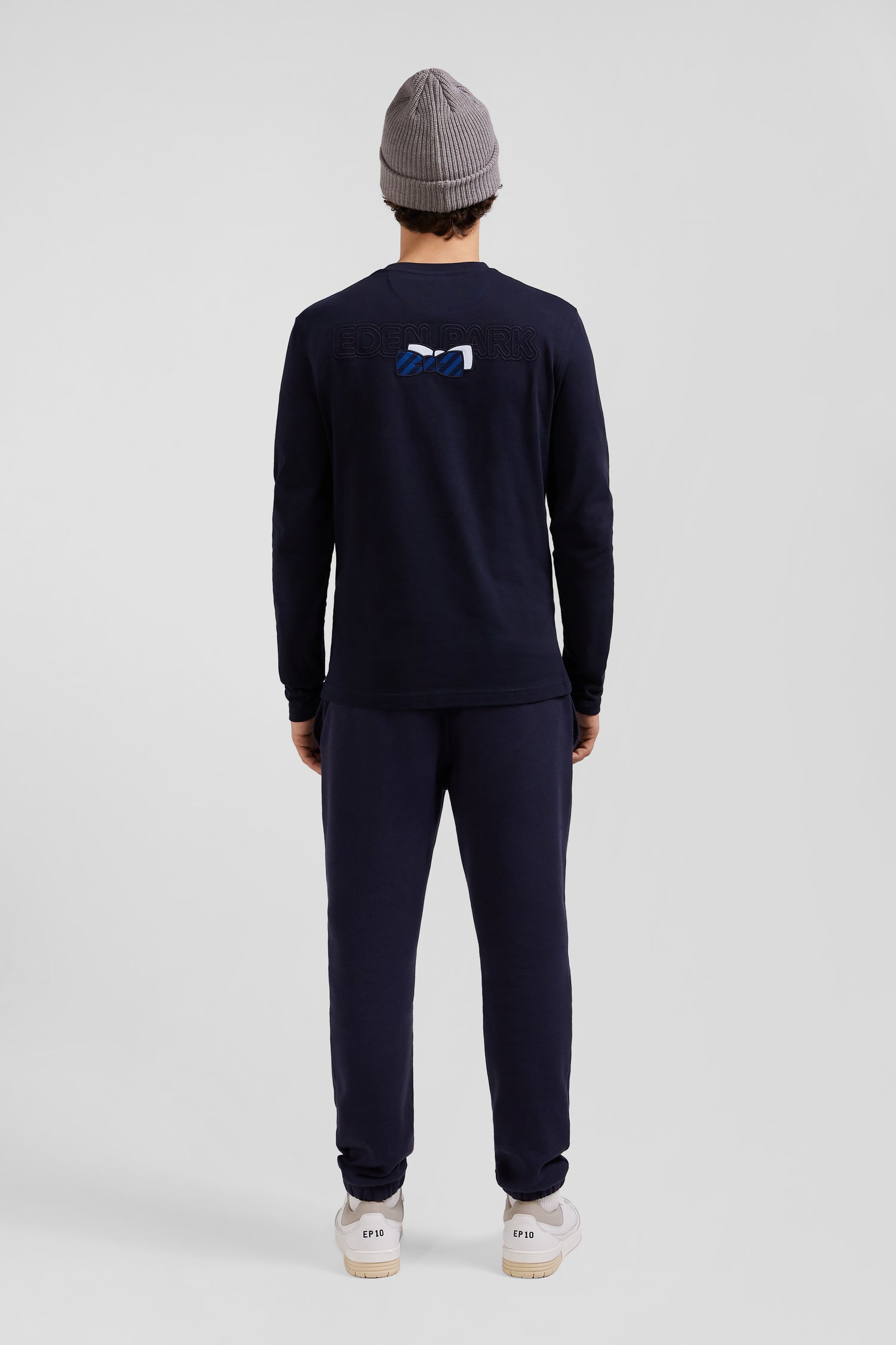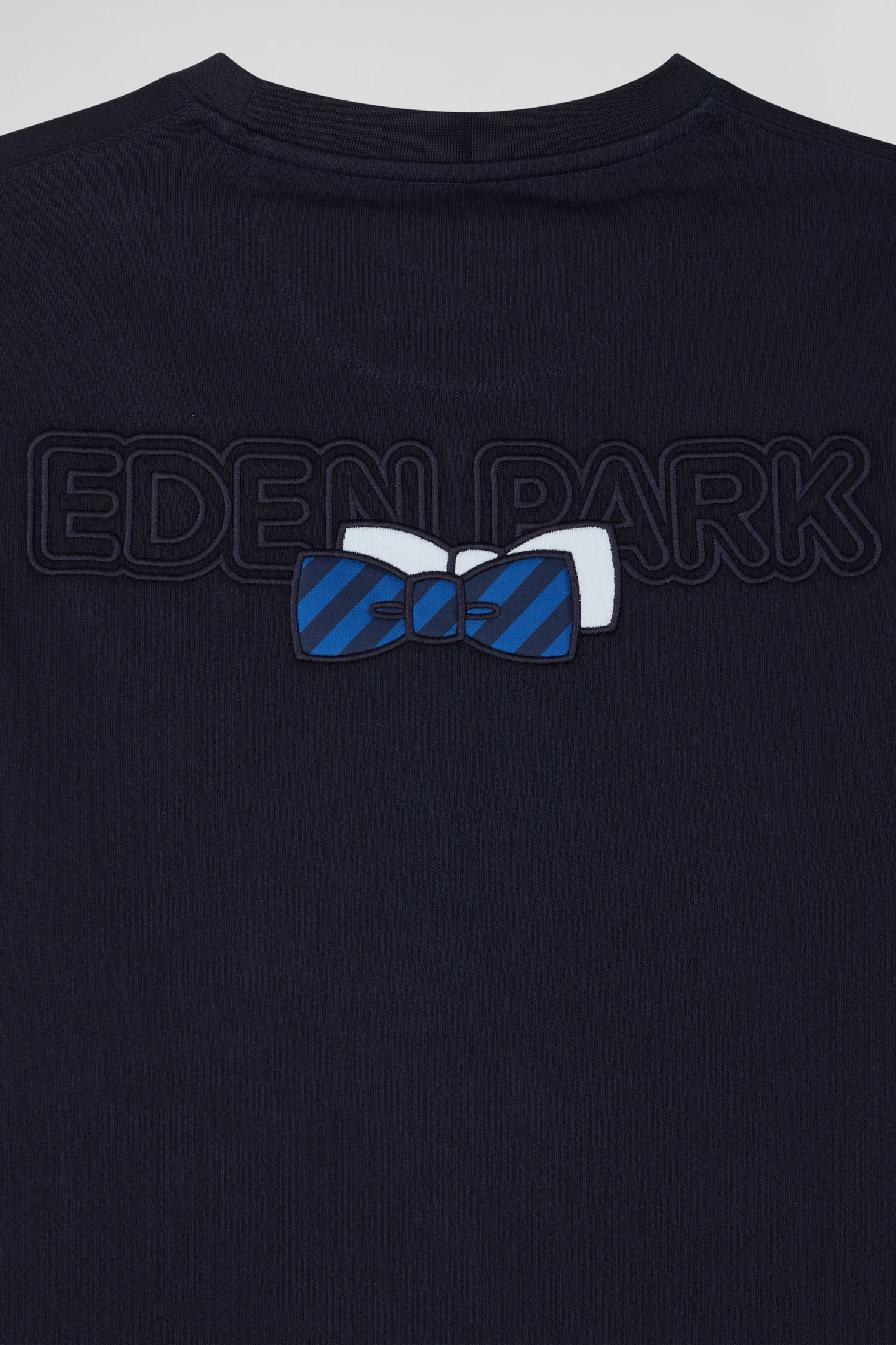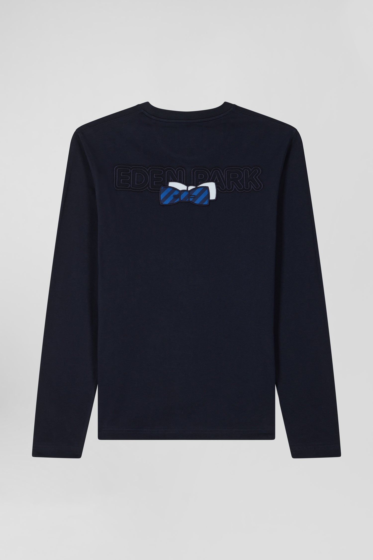 T-shirt manches longues en coton bleu marine broderie et nœuds papillon cerclés