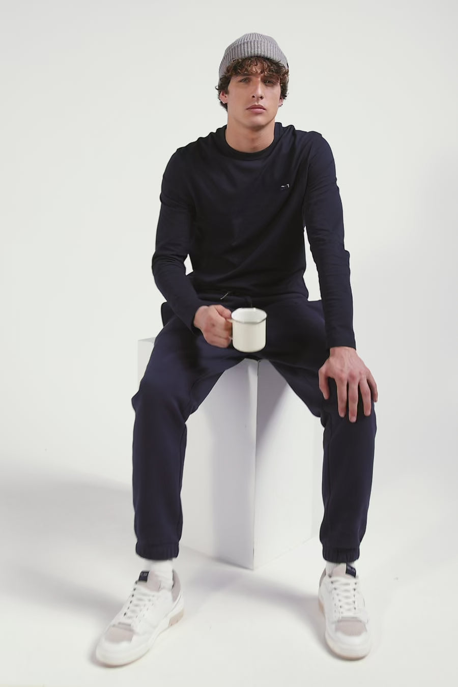 Pantalon jogging en molleton gratté bleu marine coupe Regular