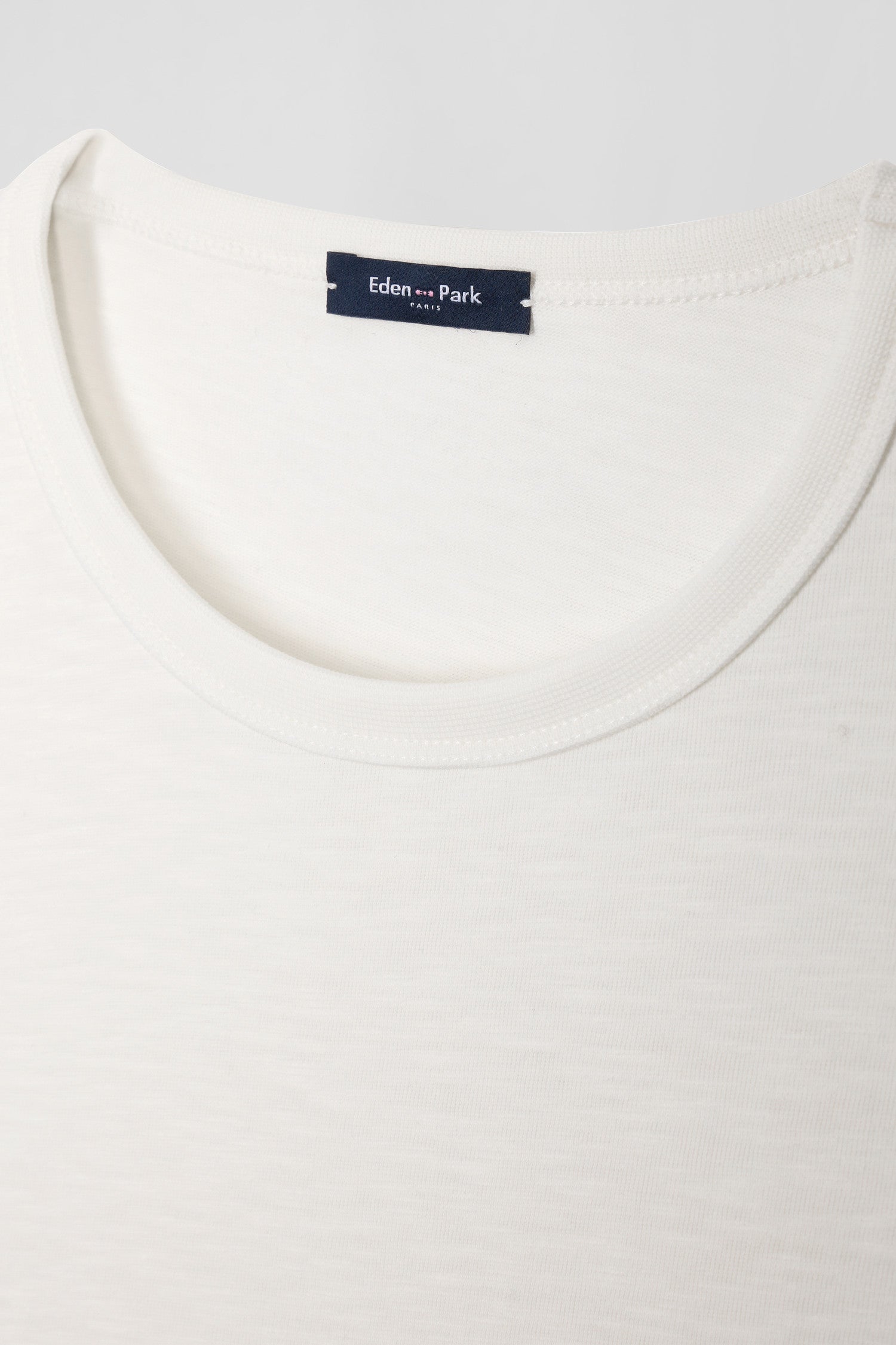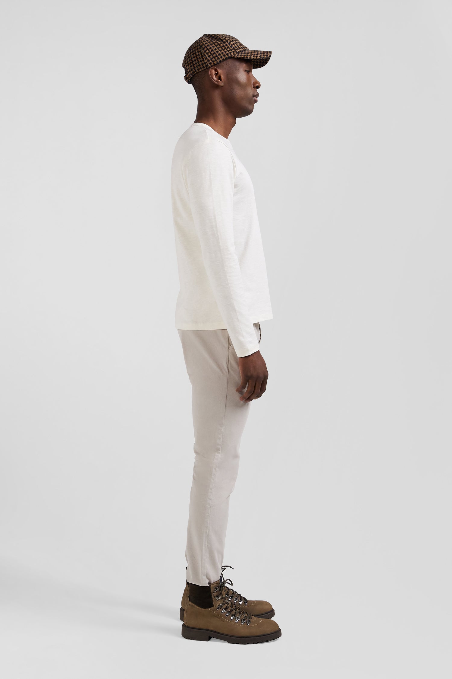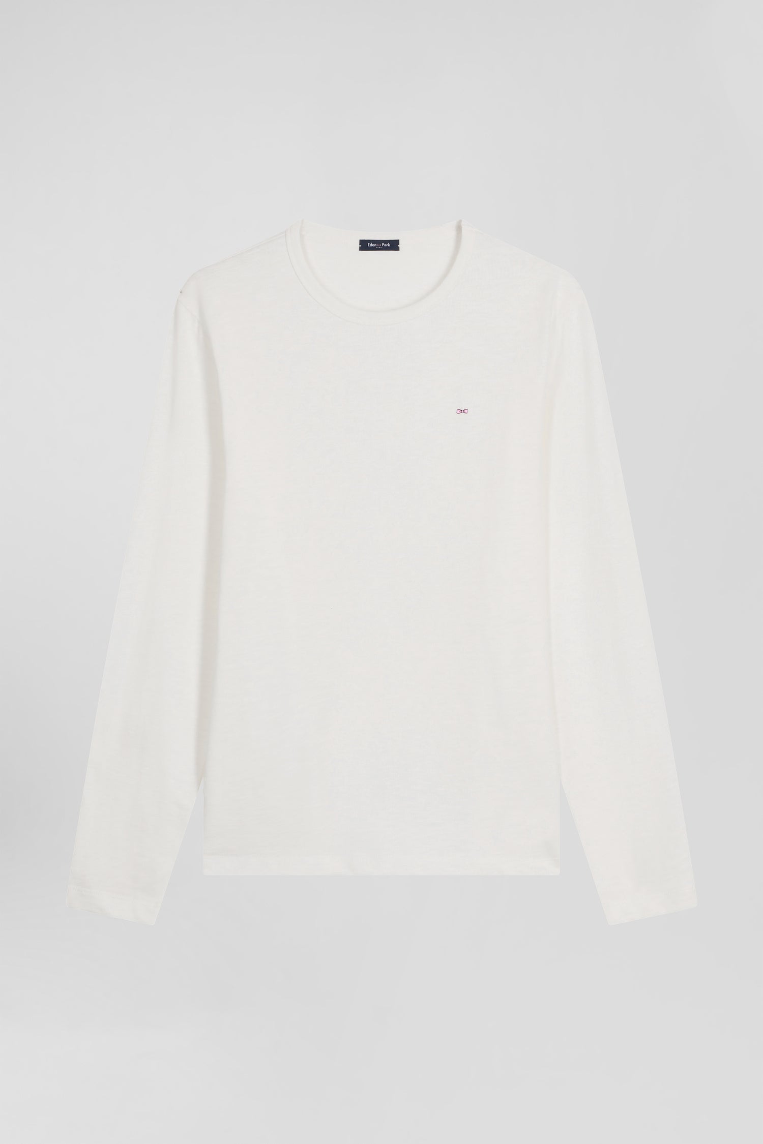 T-shirt manches longues en coton uni écru coupe Slim