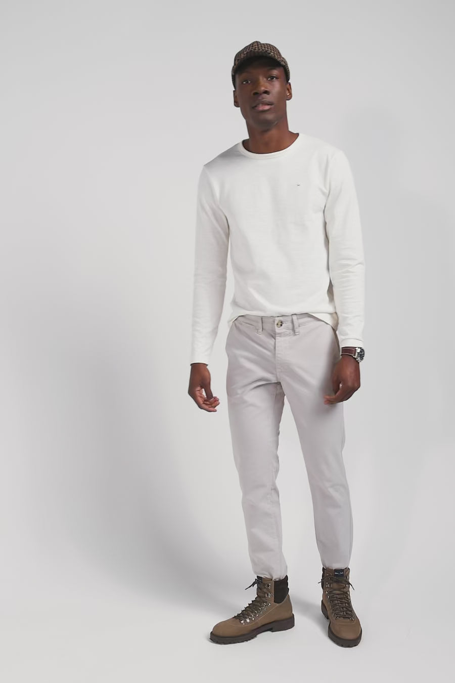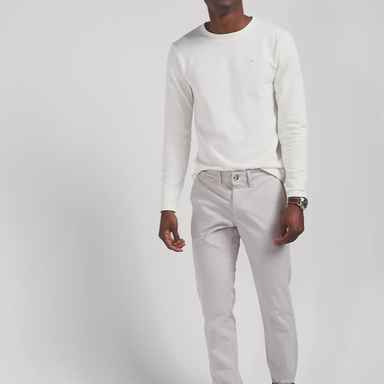 Pantalon chino uni en coton stretch beige coupe Slim