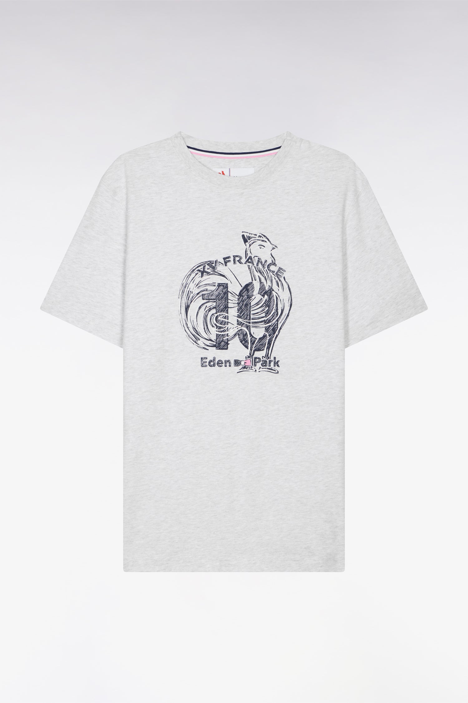 T-shirt XV de France à manches courtes sérigraphié en coton gris coupe regular