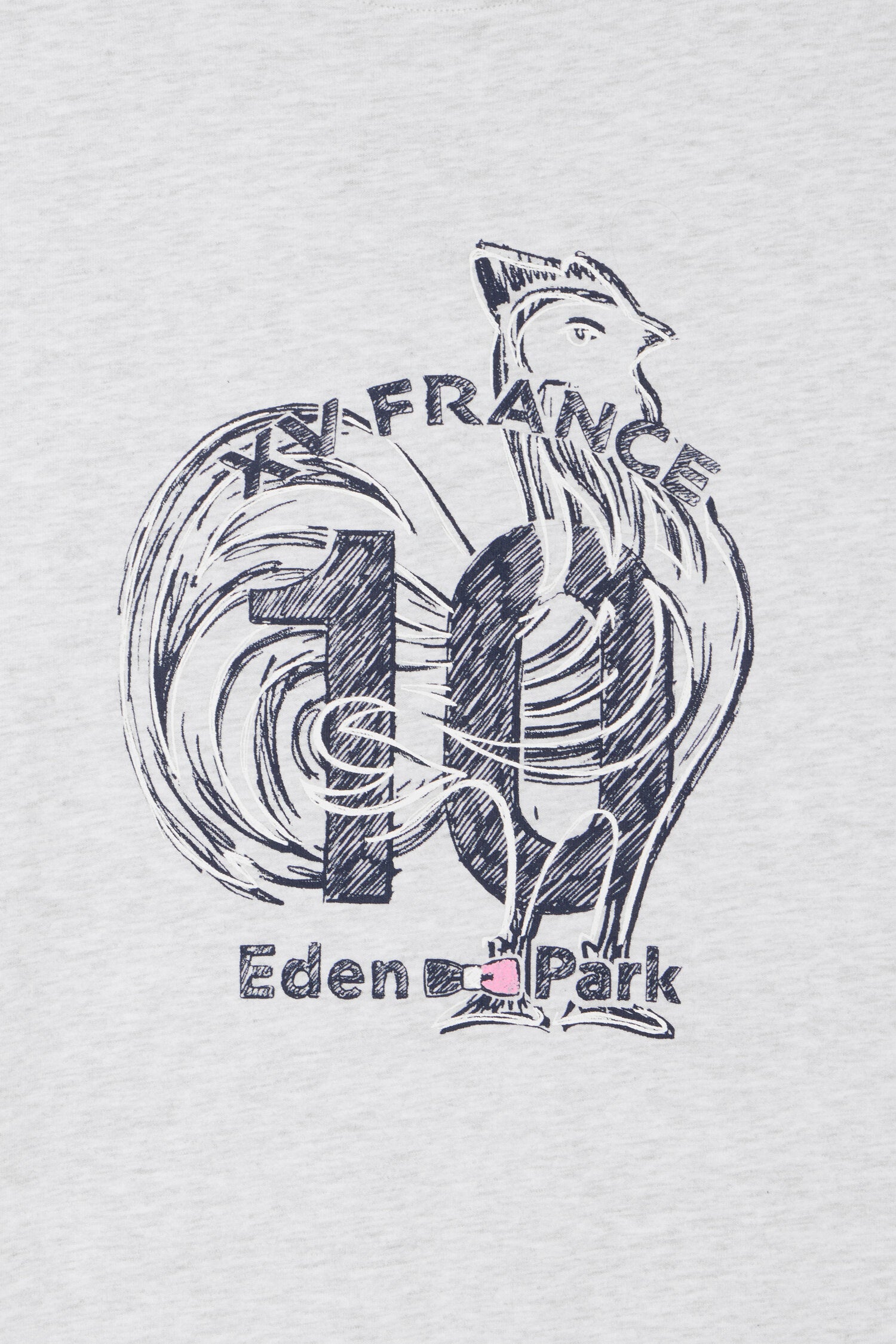 Notre T-shirt en jersey de coton gris adopte une coupe droite confortable et dévoile une sérigraphie graphique centrée sur le coq, symbole fort du rugby français. Associée à la signature Eden Park, elle compose un visuel identitaire, pensé pour prolonger l’esprit du rugby jusque dans votre quotidien.