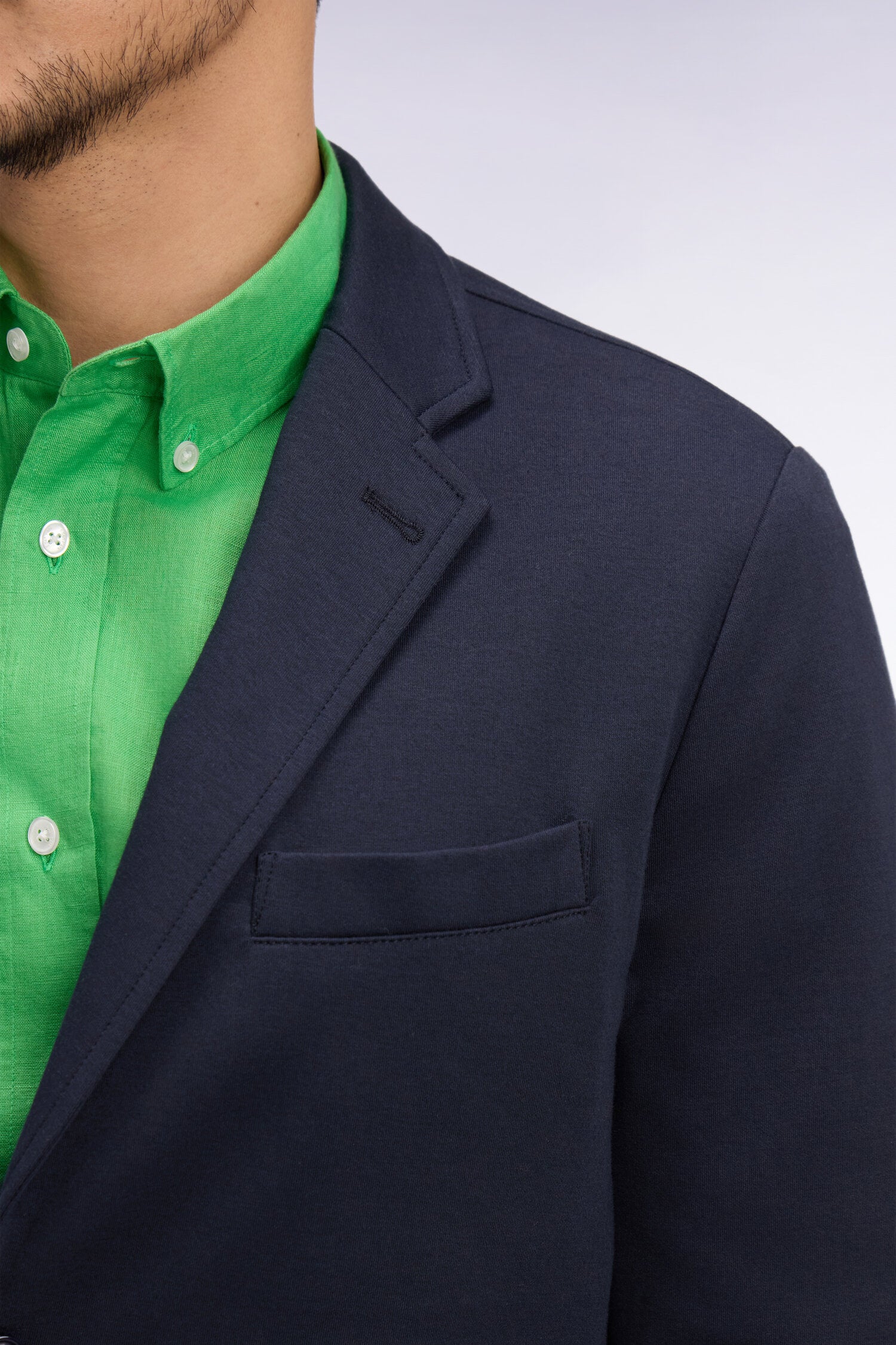 La veste de costume adopte une élégance décontractée en accord avec la philosophie sport chic Eden Park. Décliné dans un jersey de coton stretch kaki ou marine, ce blazer non doublé se dote de tous les codes propres au vestiaire tailleur, sans faire l'impasse sur le confort et la liberté de mouvement. Un bel essentiel qui saura vous accompagner de la semaine au week-end.