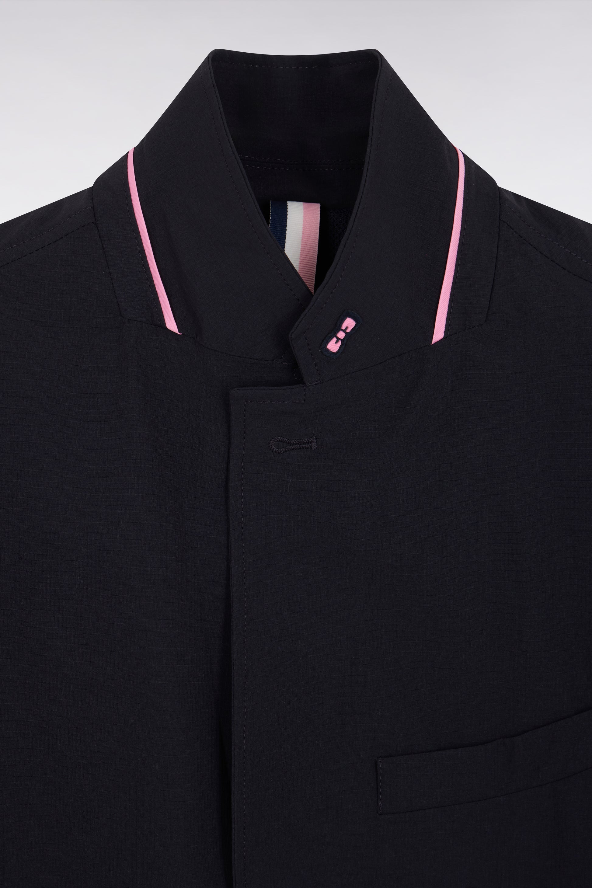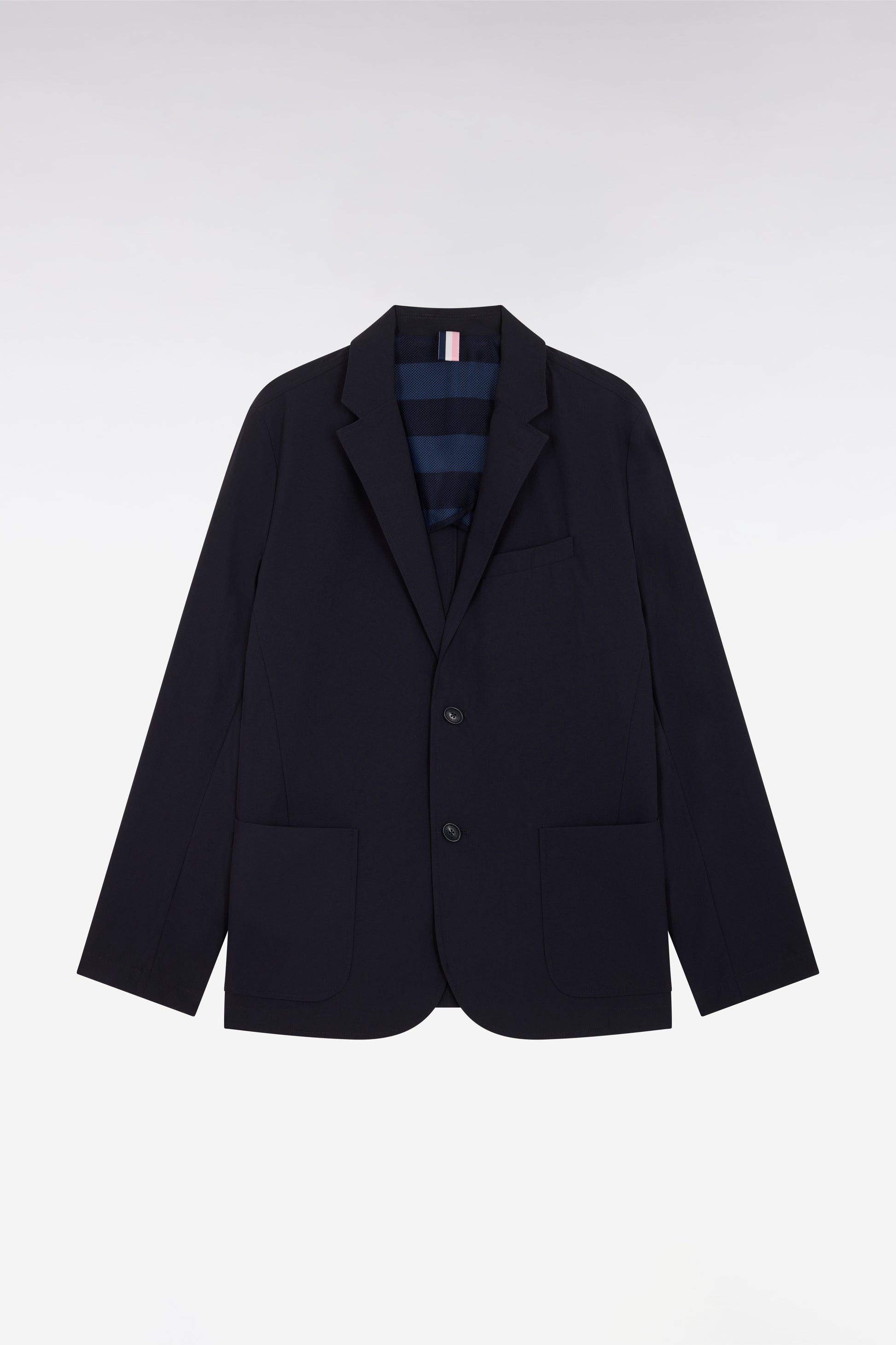 Alliant élégance et performance, cette veste inspirée des costumes masculins est réalisée dans un tissu ripstop technique, revisitant l’un des essentiels du vestiaire Eden Park. Conçu dans une matière légère, déperlente et extensible, thermocollé pour une tenue impeccable et un entretien facile, ce blazer marine offre un confort optimal au quotidien. Sa coupe classique, sa demi-doublure en mesh à rayures rugby et ses finitions signature, ruban tricolore ottoman, passepoil en tissu cravate et nœud papillon en gomme sous le col, soulignent son esprit sport chic. Parfaite avec le pantalon assorti, cette veste incarne le style urbain et décontracté propre à notre Maison française. Infroissable, c'est un allié de choix pour des vacances ou un déplacement professionnel.